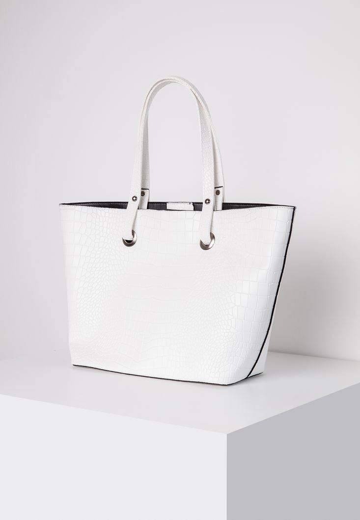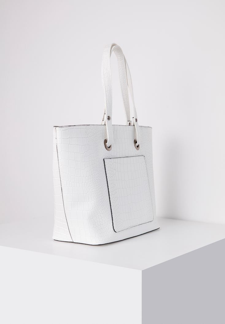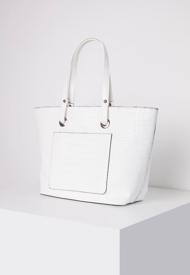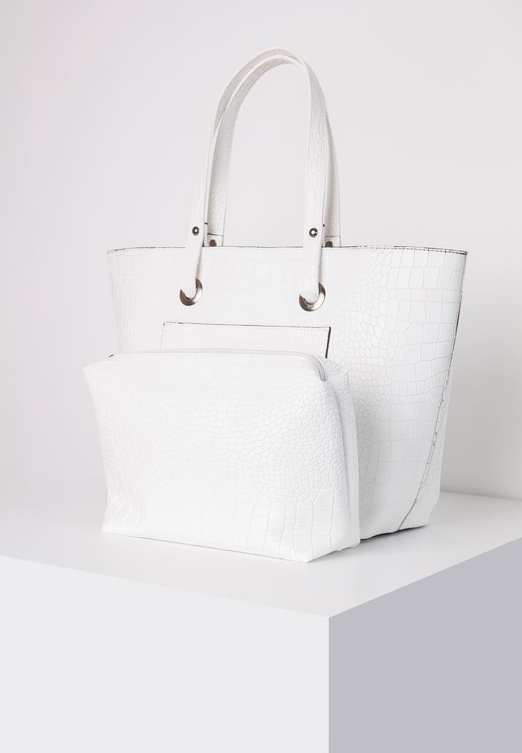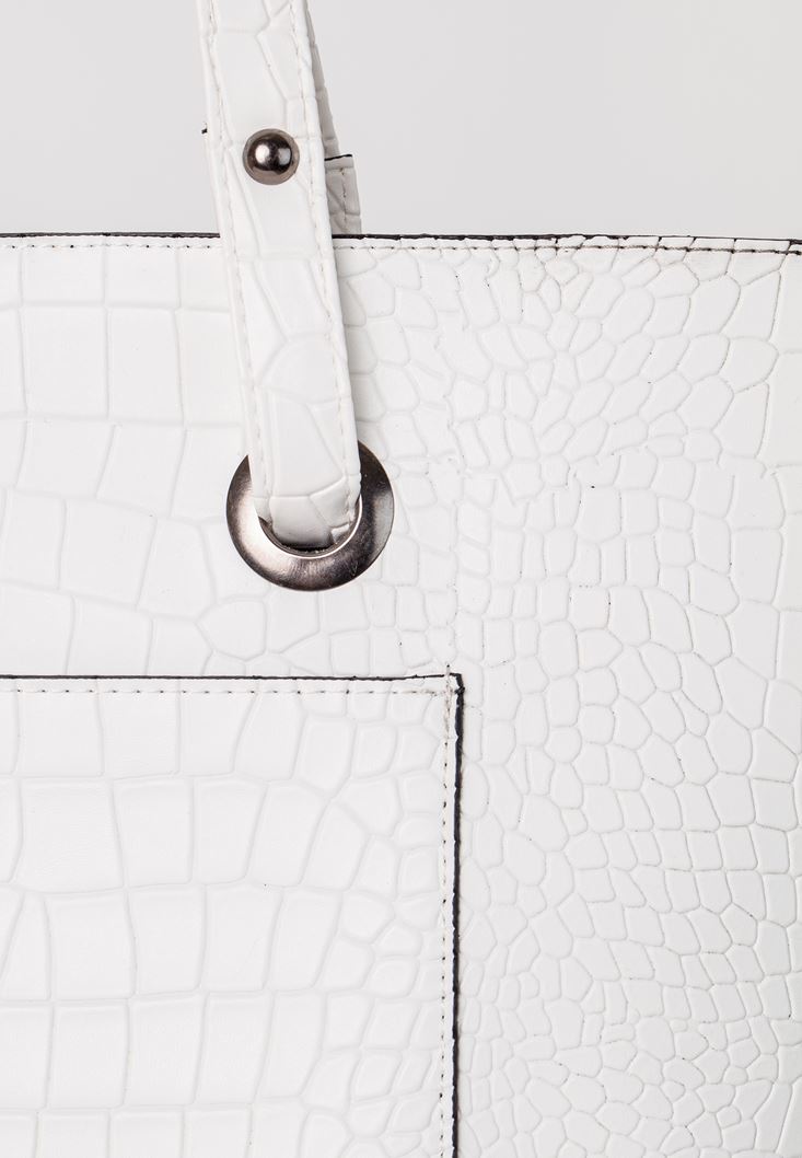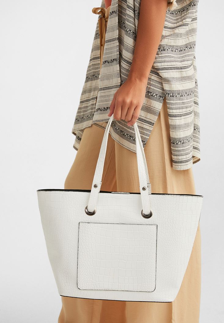 Beyaz Cep Detaylı Kol Çantası