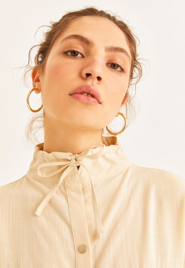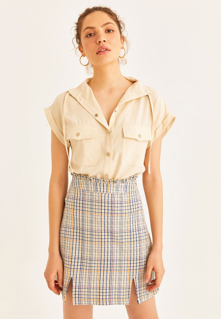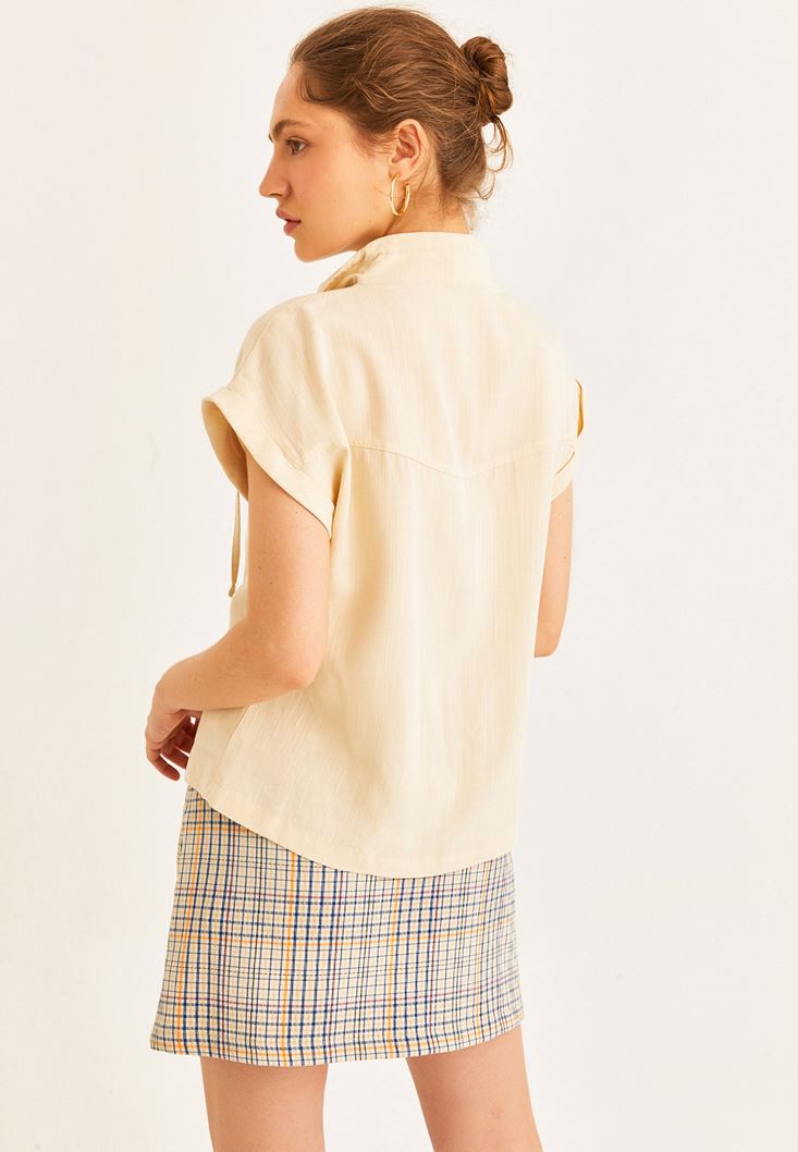 Bej Cep Detaylı Kolsuz Gömlek