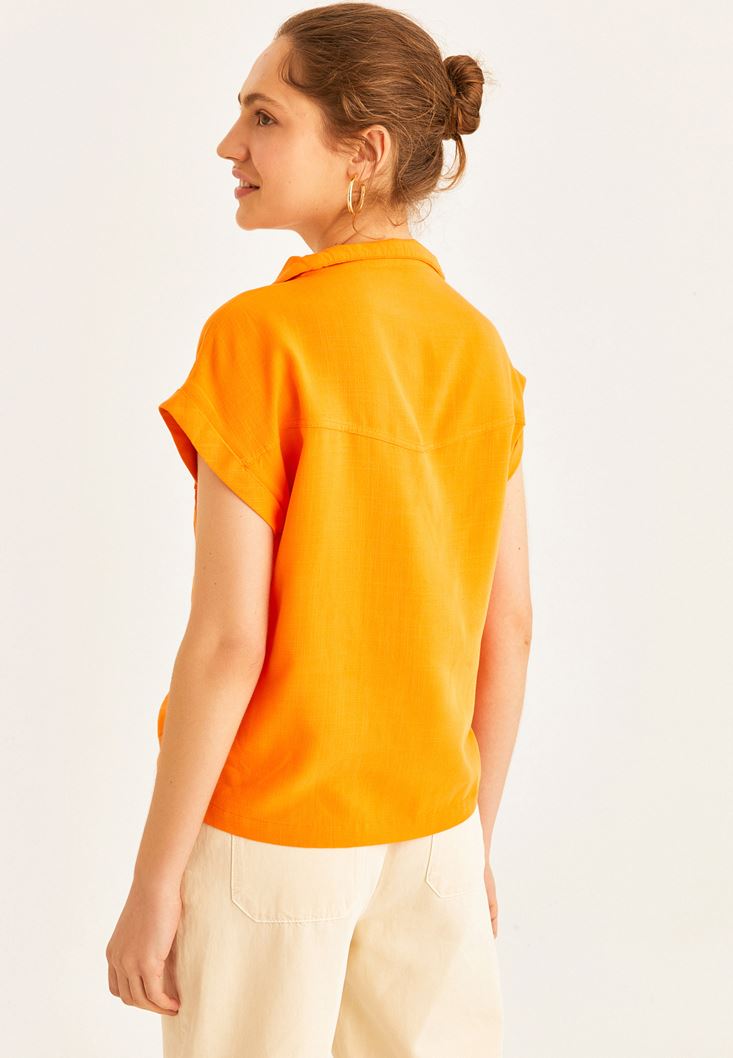 Turuncu Cep Detaylı Kolsuz Gömlek