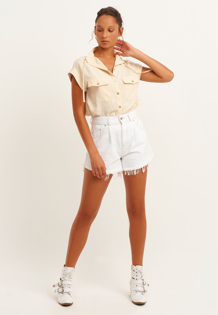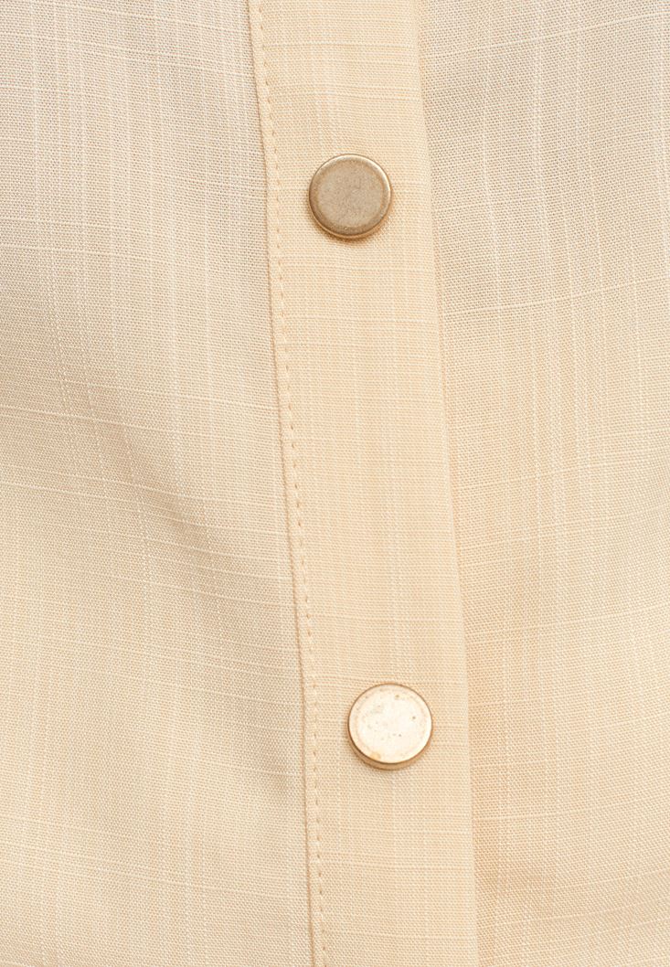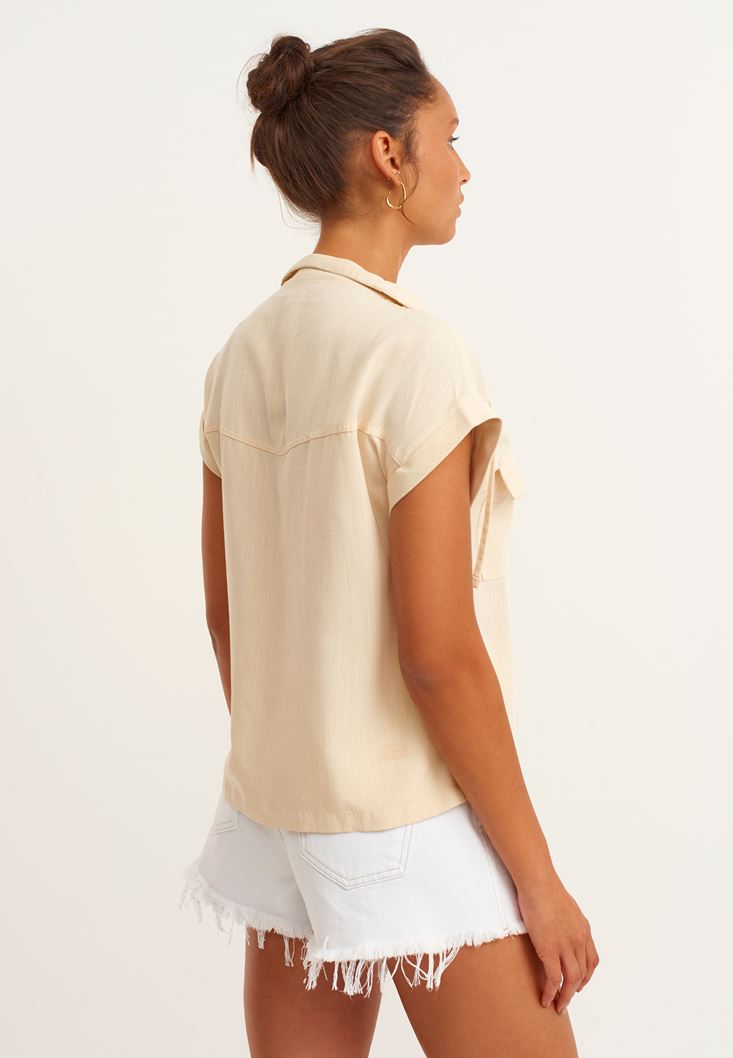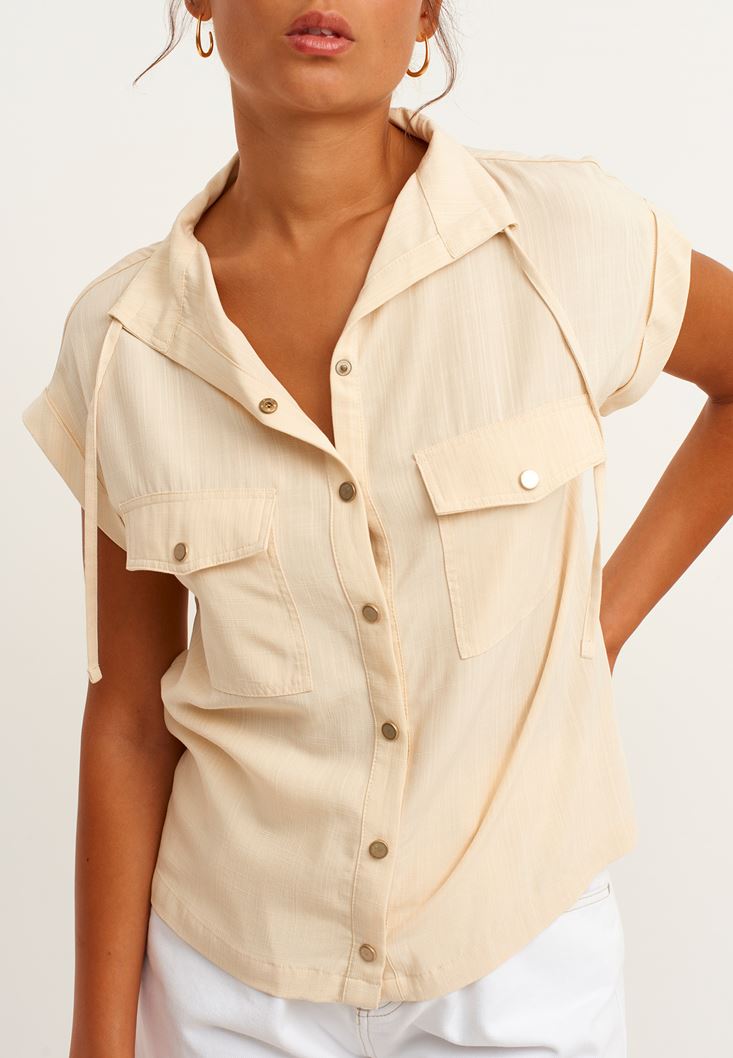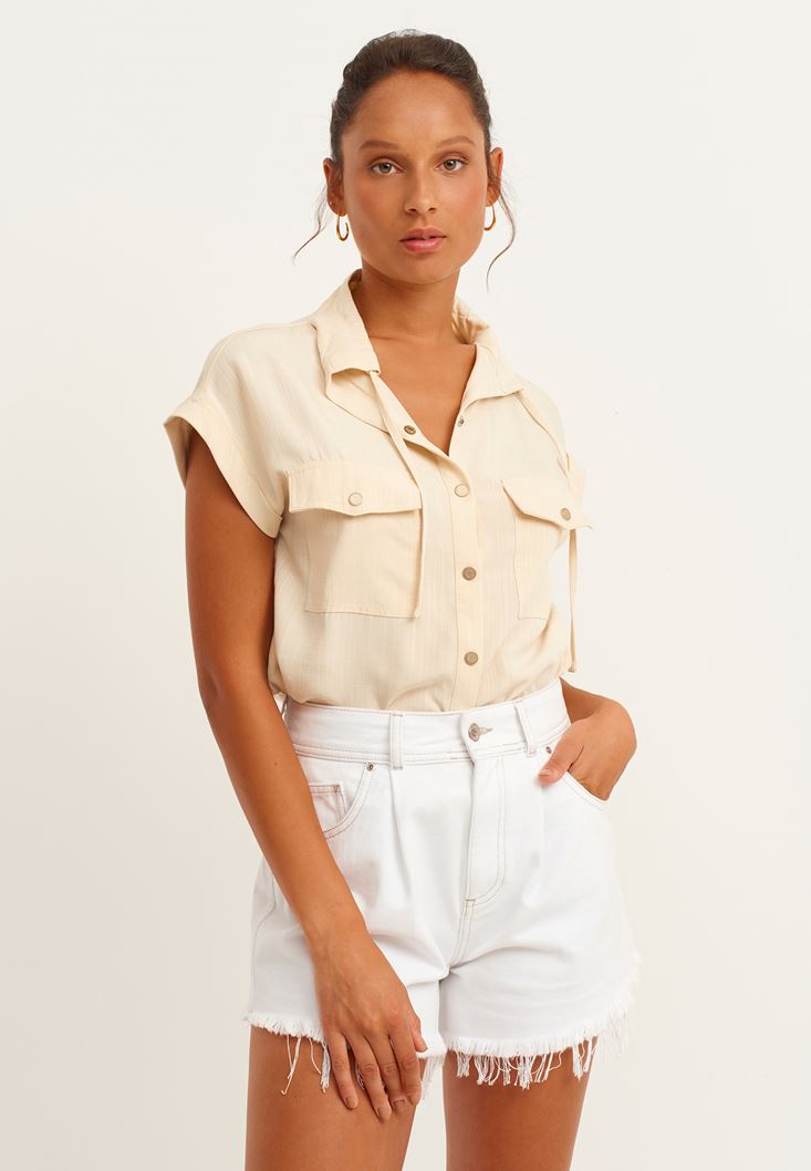 Bej Cep Detaylı Kolsuz Gömlek