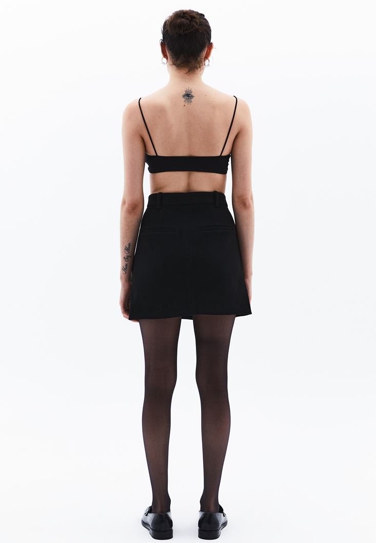 Siyah Cep Detaylı Mini Etek