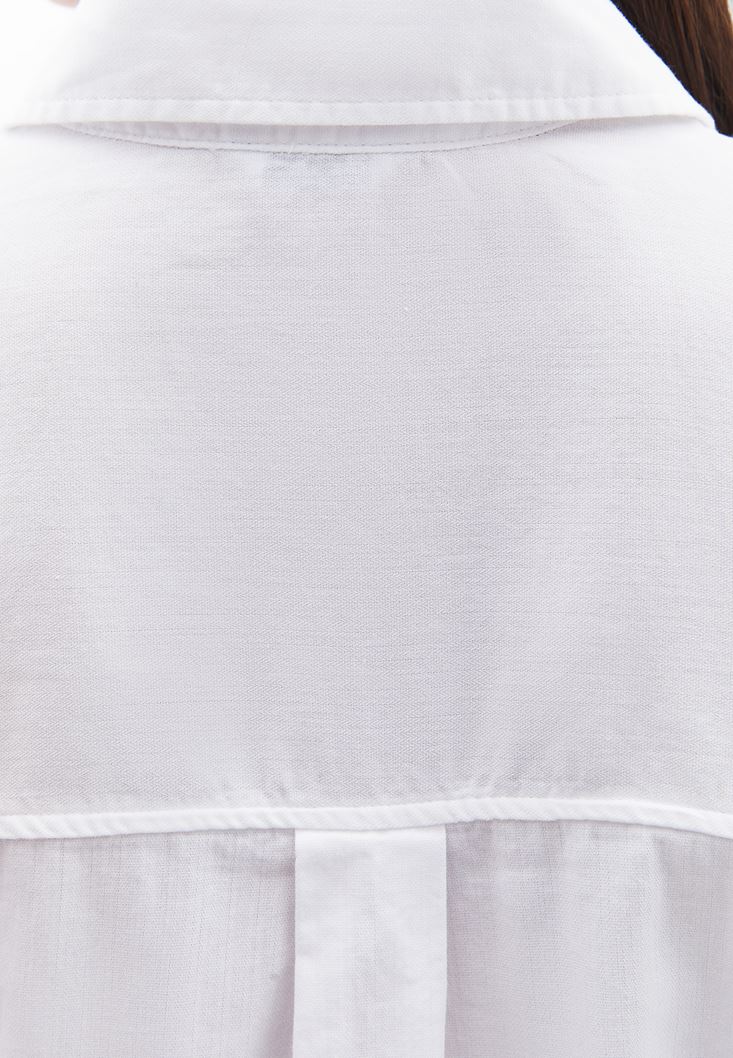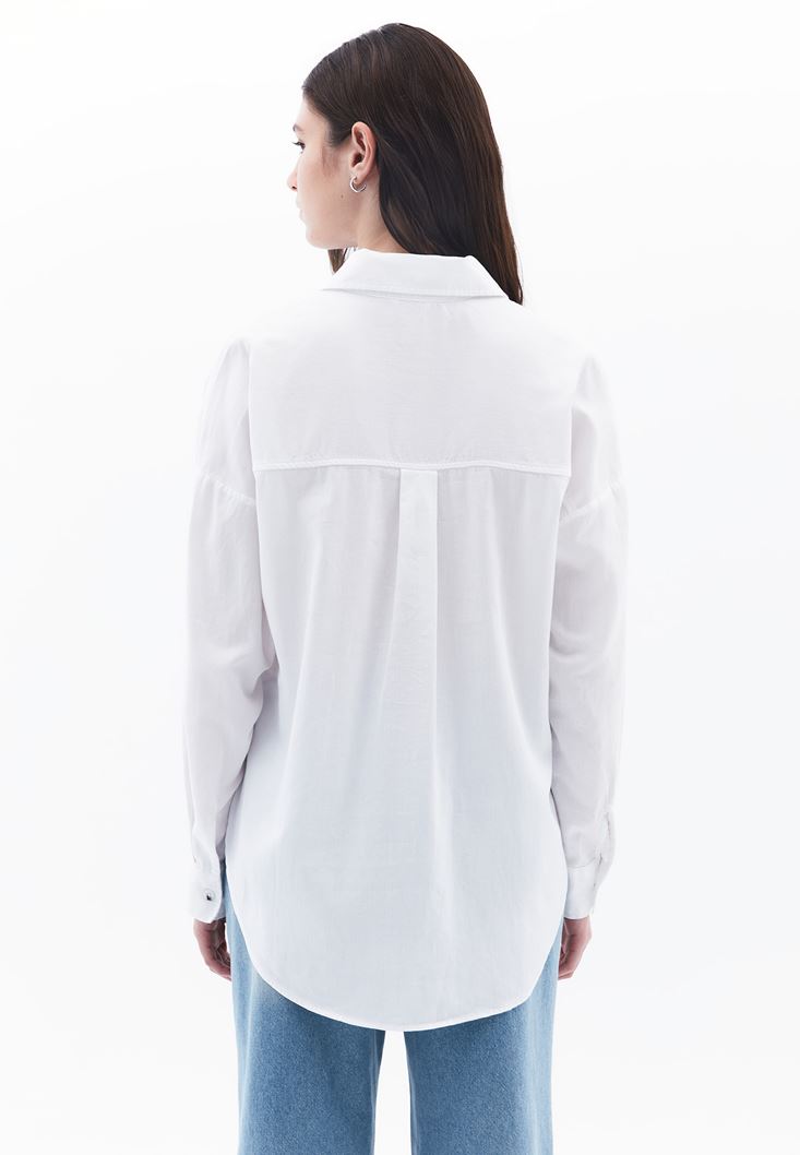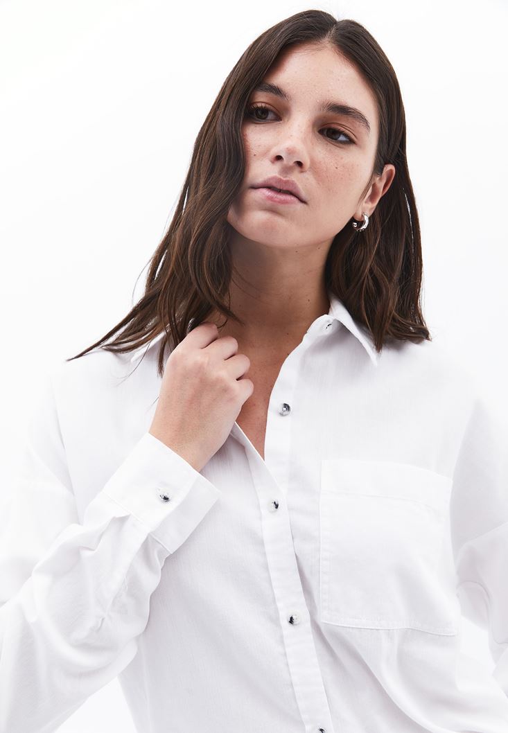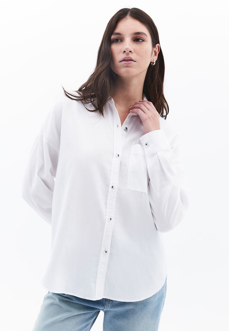 Beyaz Cep Detaylı Oversize Gömlek