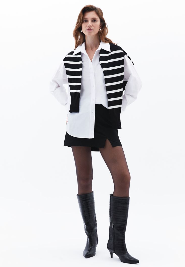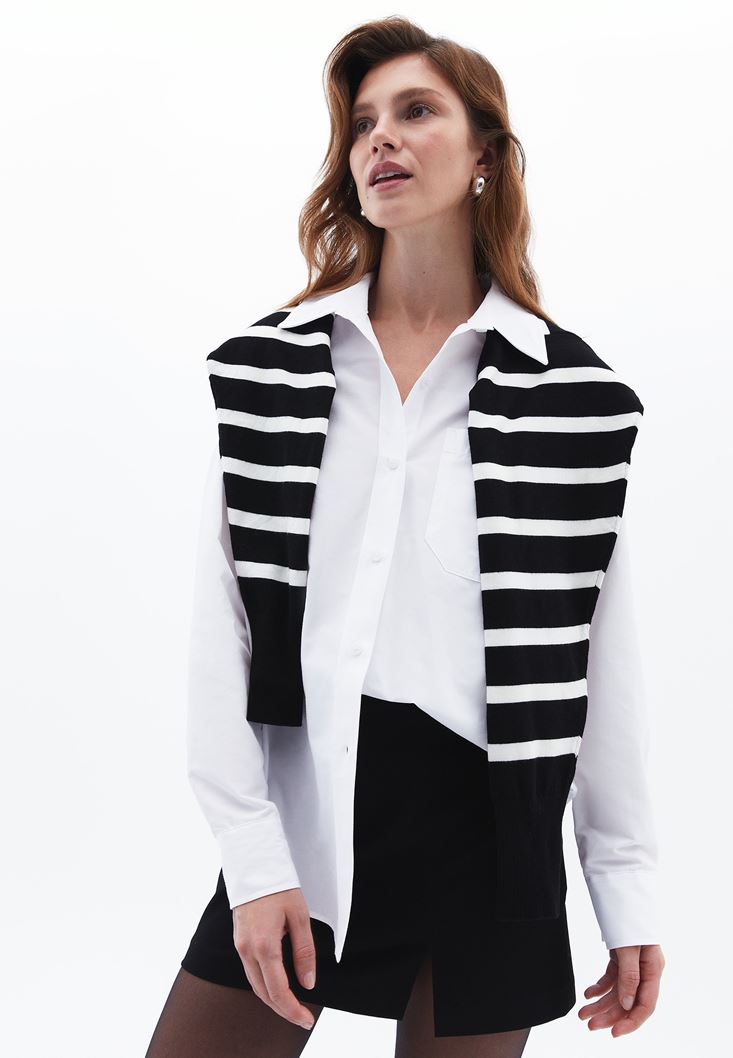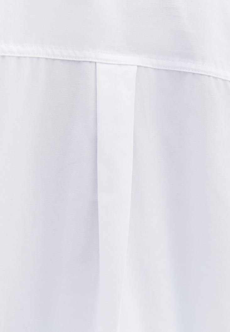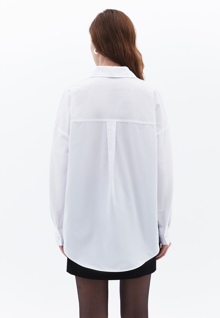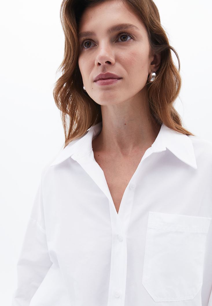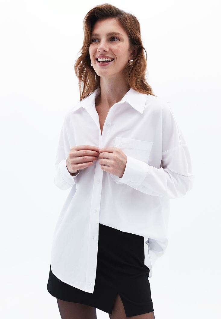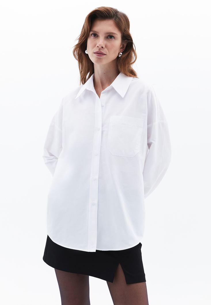 Beyaz Cep Detaylı Oversize Gömlek