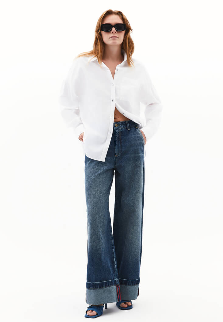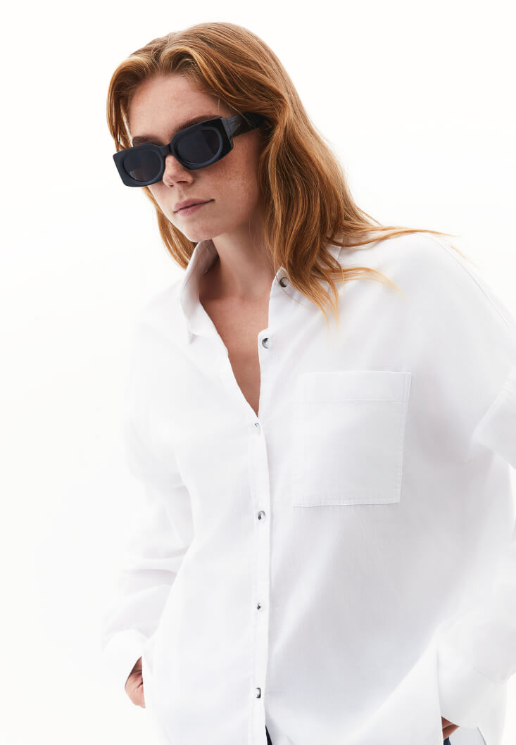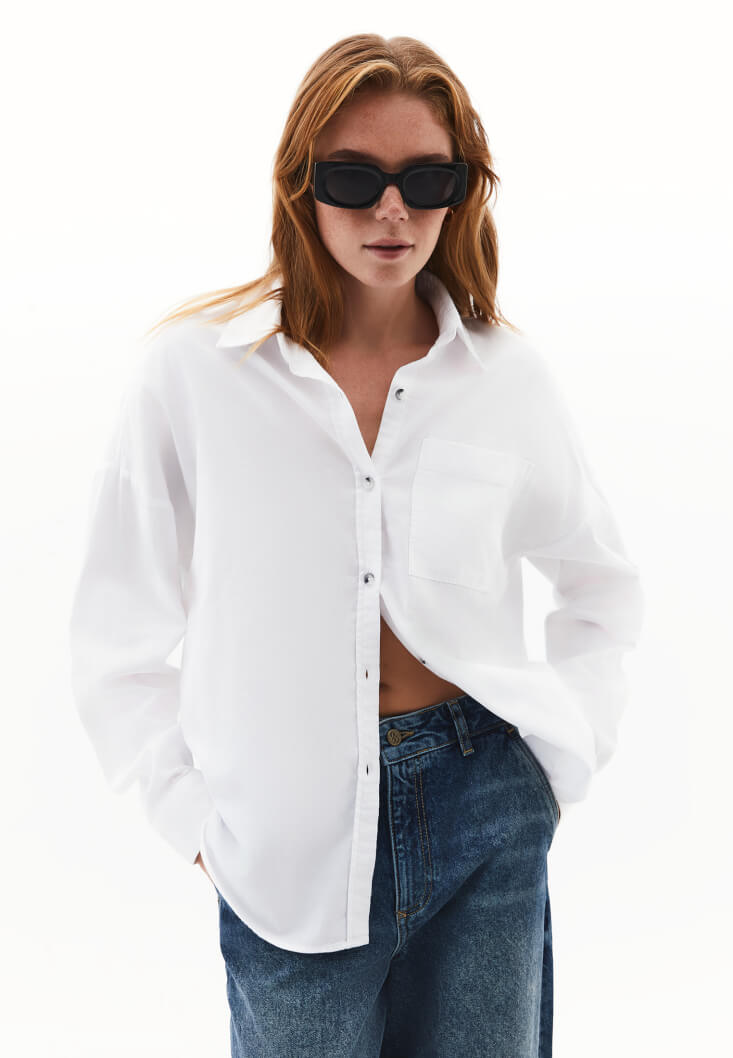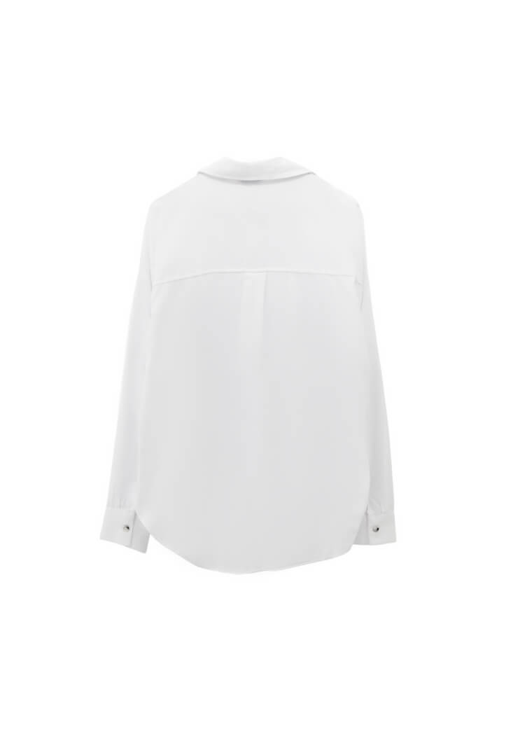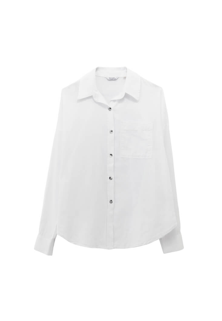 • Bayan Beyaz Cep Detaylı Oversize Gömlek