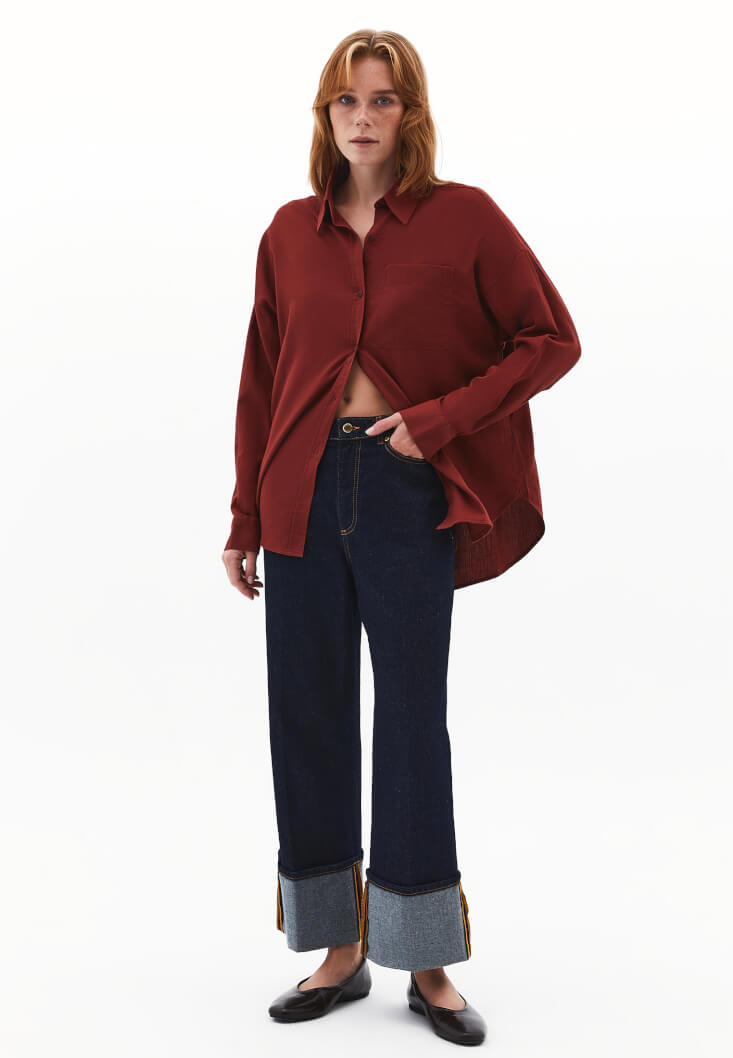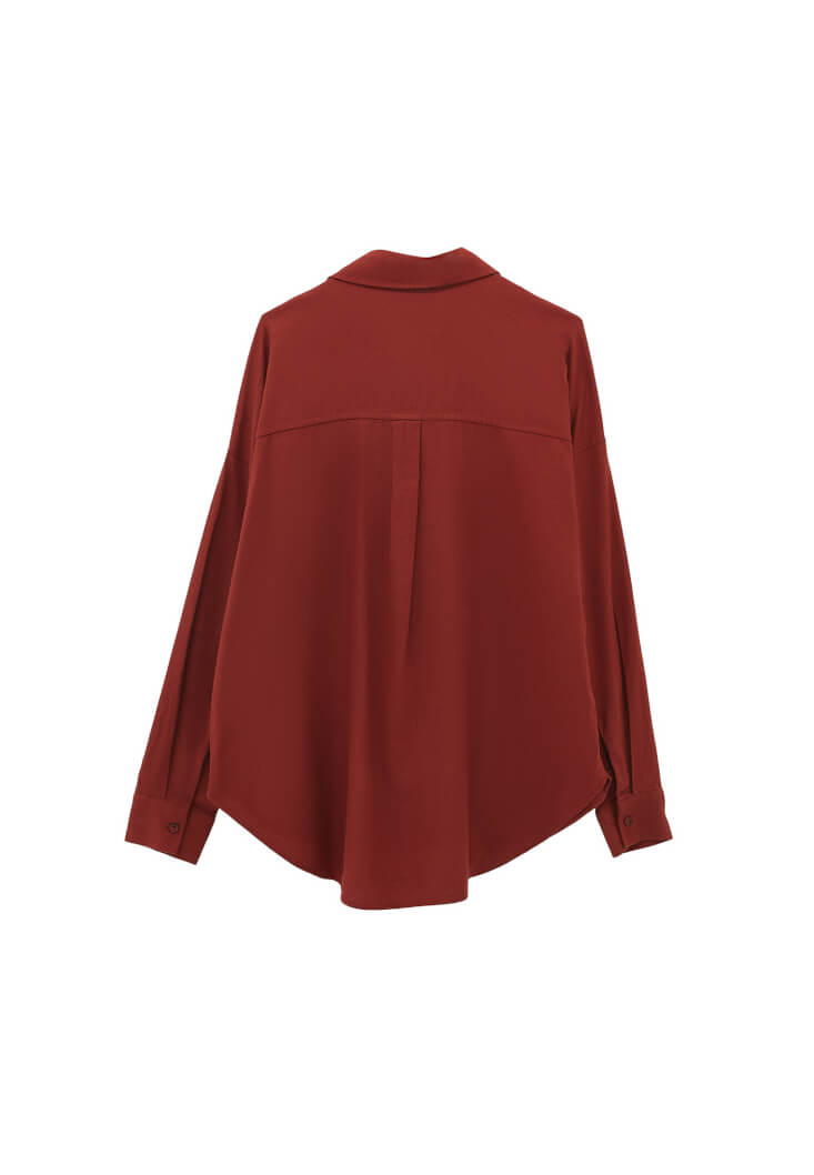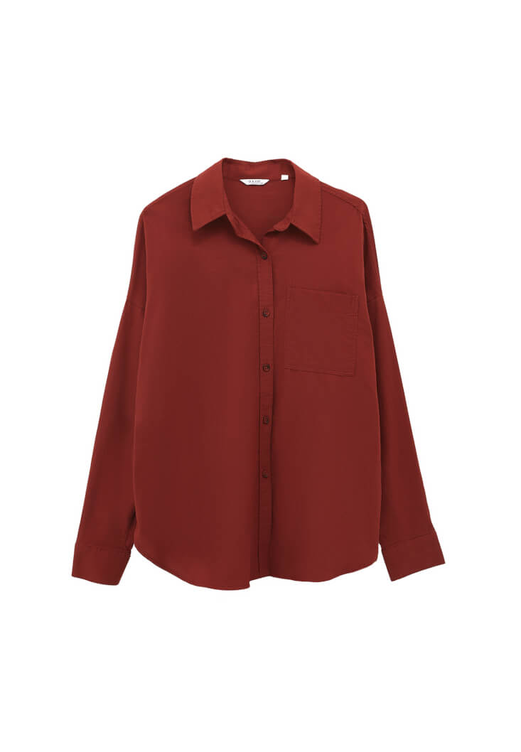 Bordo Cep Detaylı Oversize Gömlek