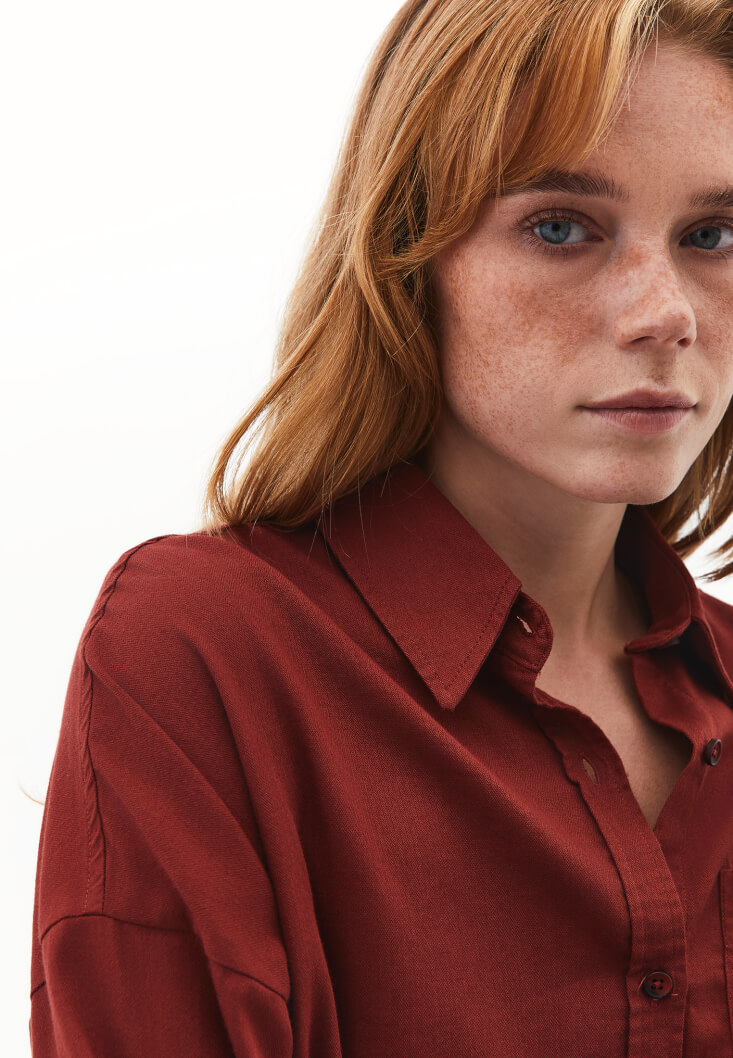 • Bayan Bordo Cep Detaylı Oversize Gömlek