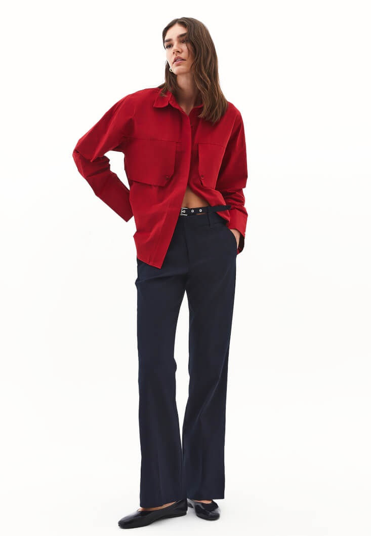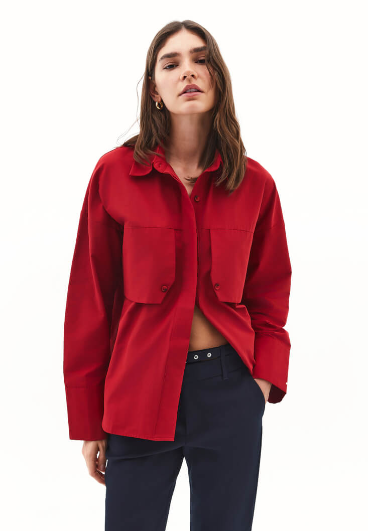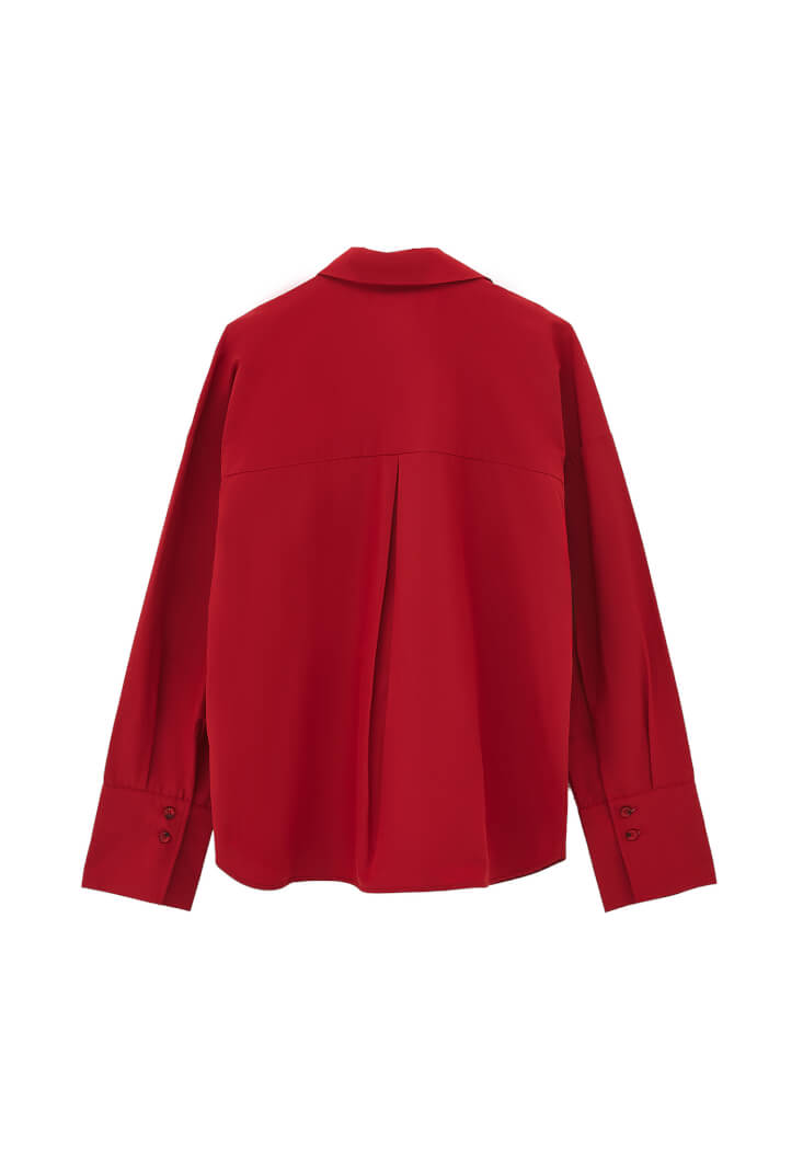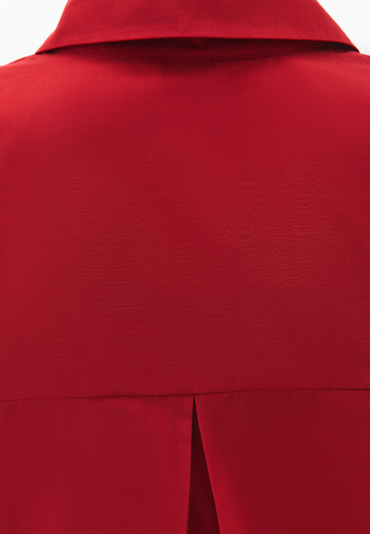 • Bayan Kırmızı Cep Detaylı Oversize Gömlek