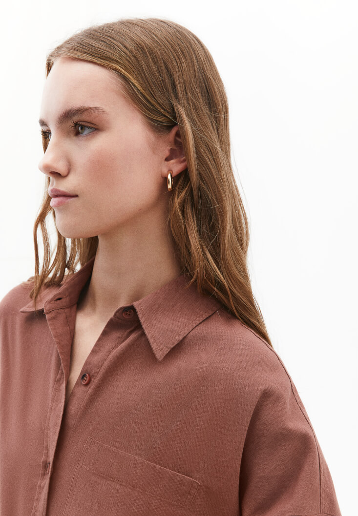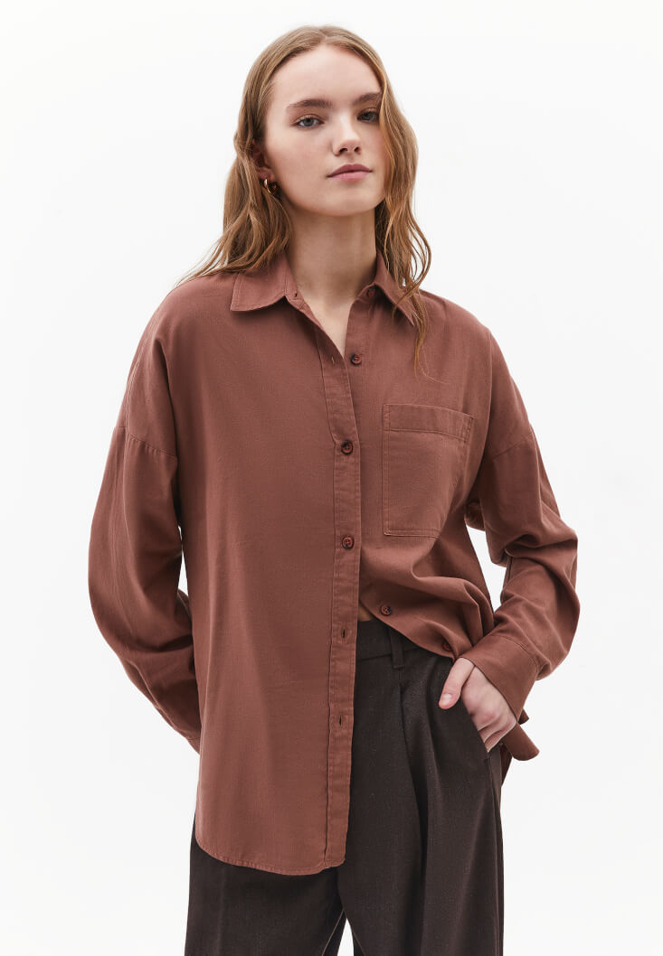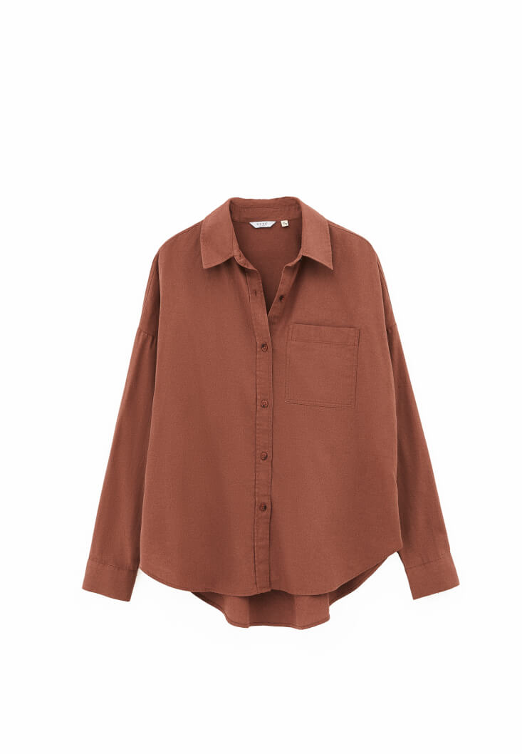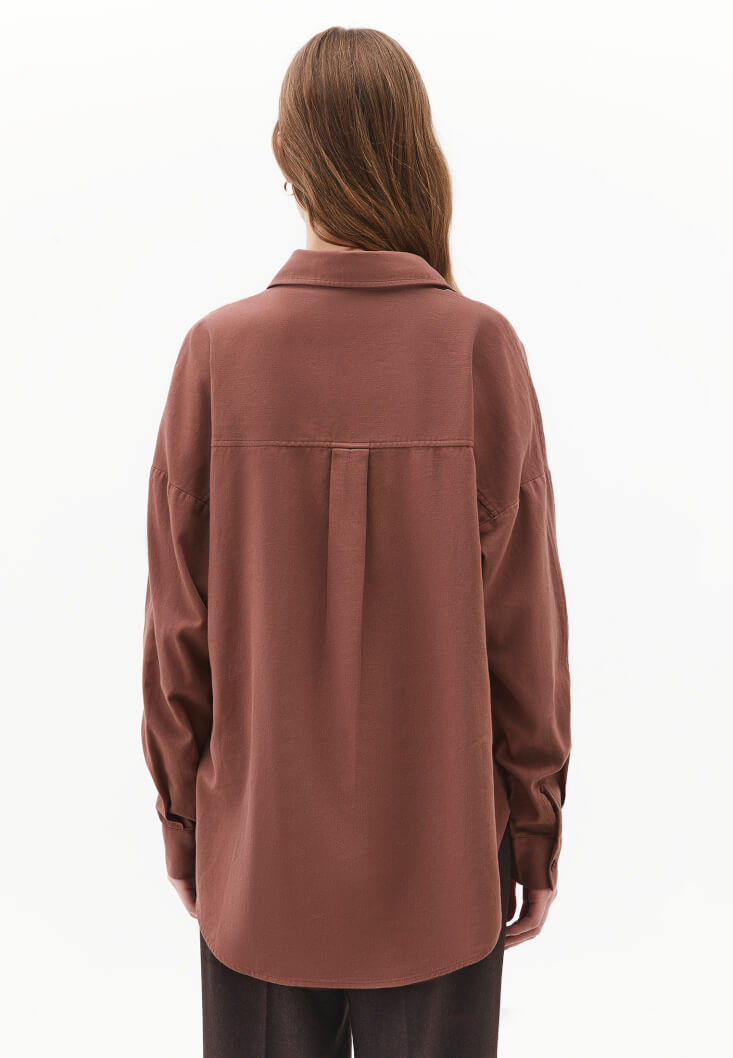 • Bayan Kahverengi Cep Detaylı Oversize Gömlek