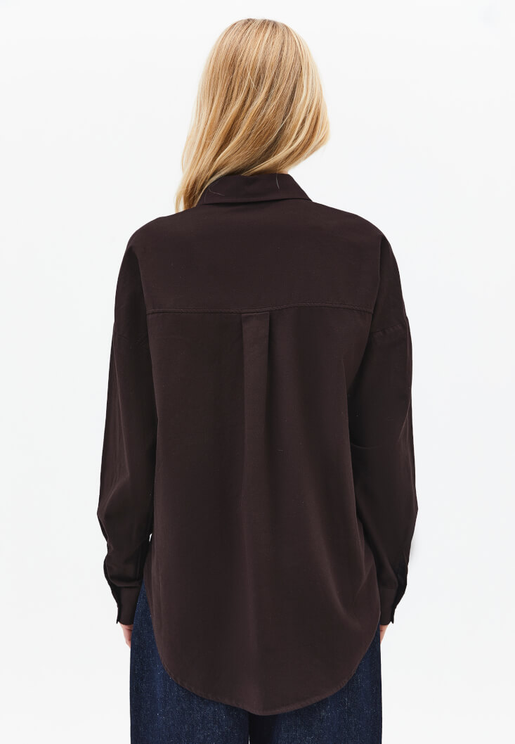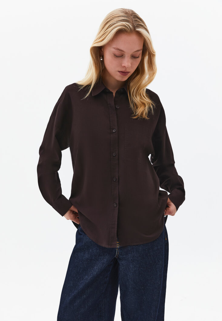 Kahverengi Cep Detaylı Oversize Gömlek