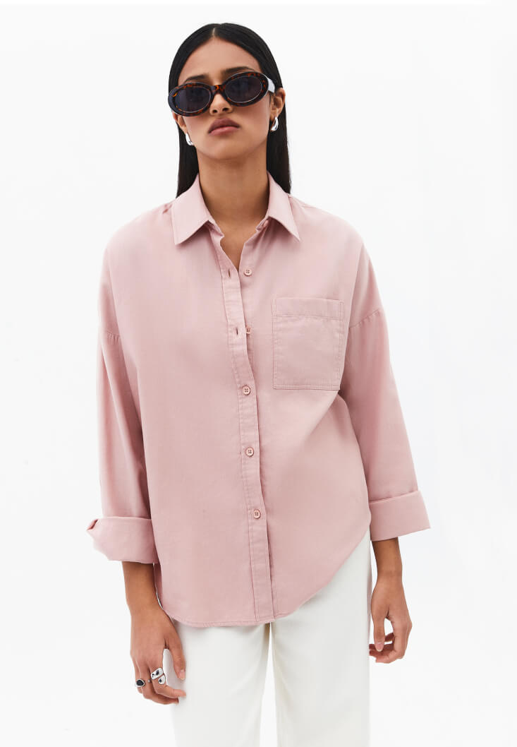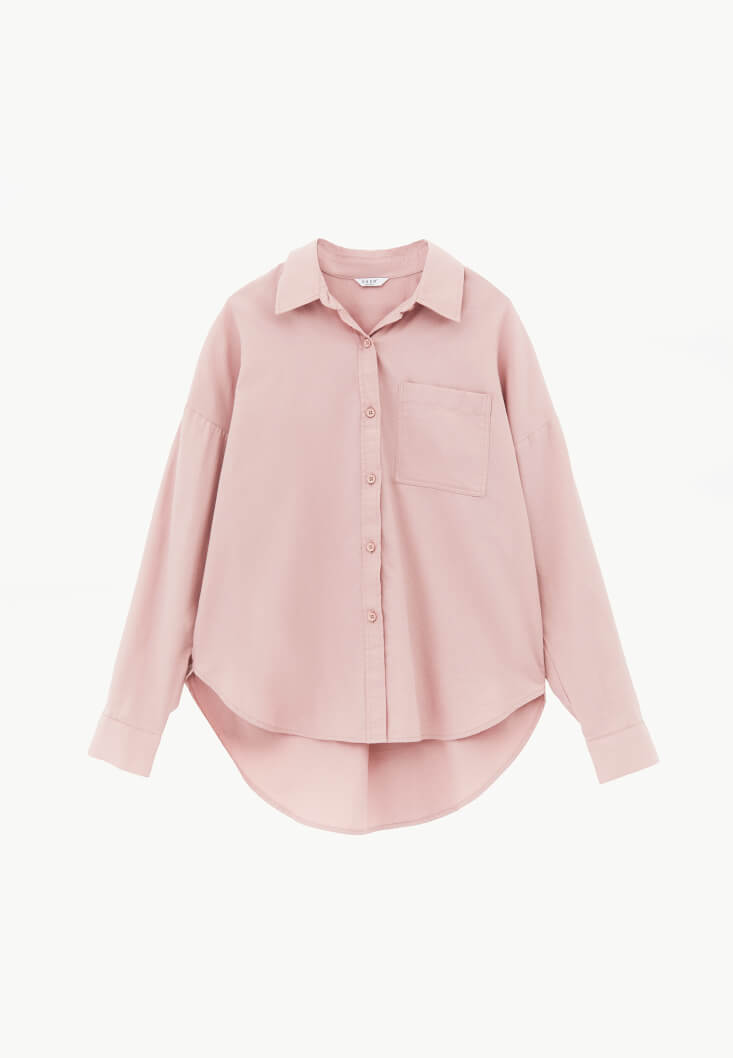 Pembe Cep Detaylı Oversize Gömlek