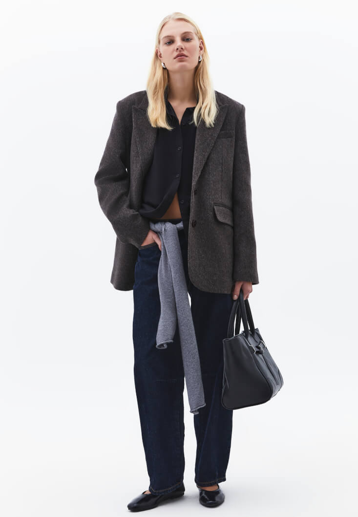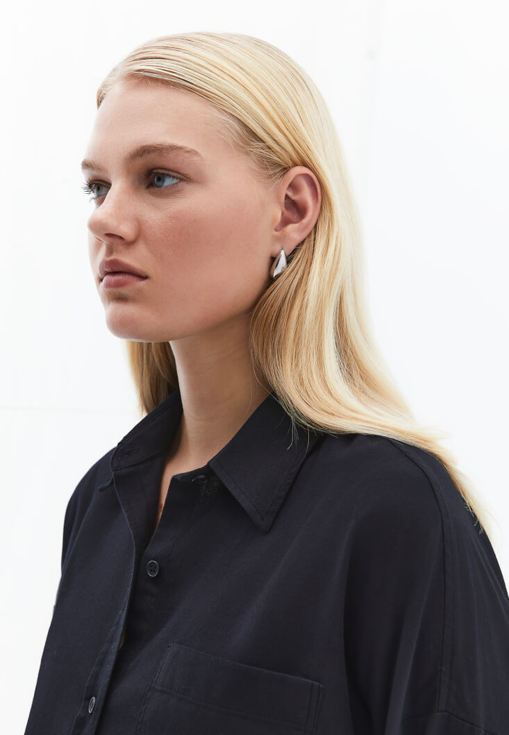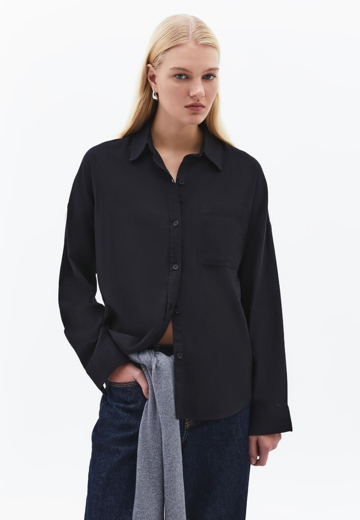 • Bayan Siyah Cep Detaylı Oversize Gömlek