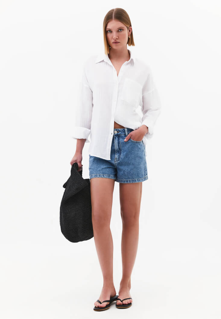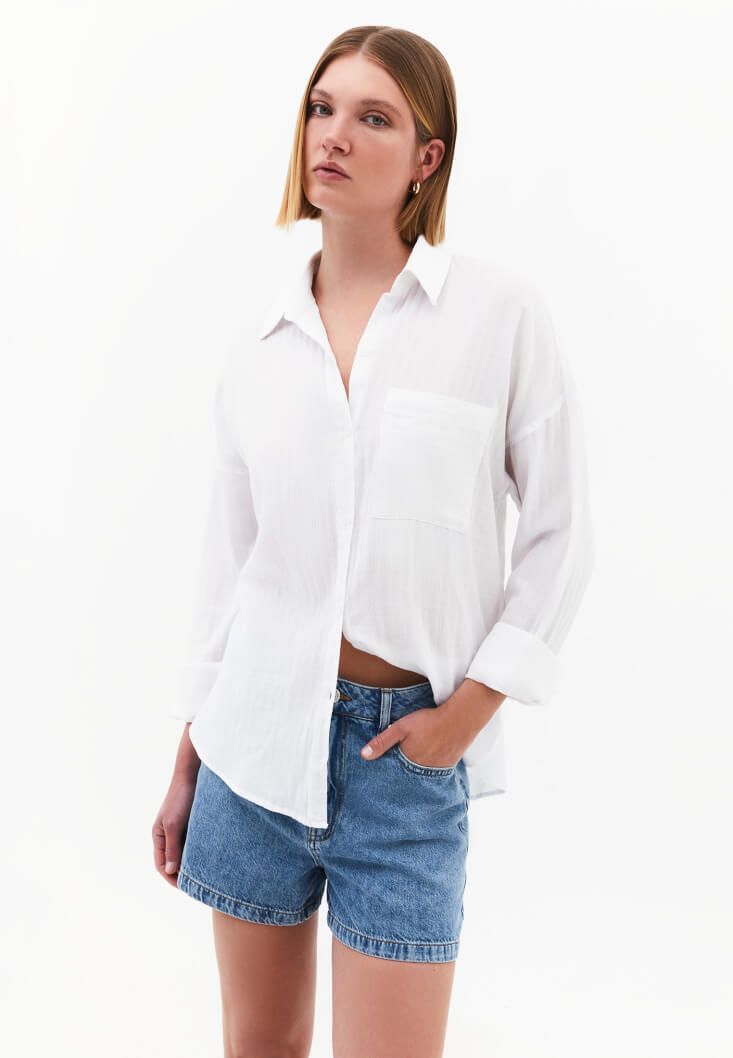 Beyaz Cep Detaylı Pamuklu Gömlek
