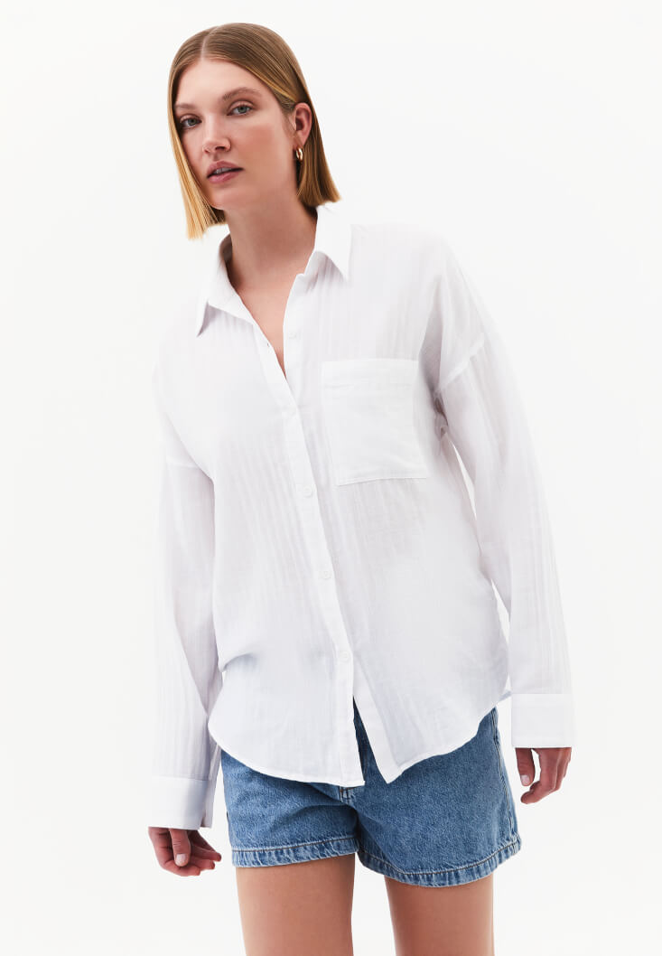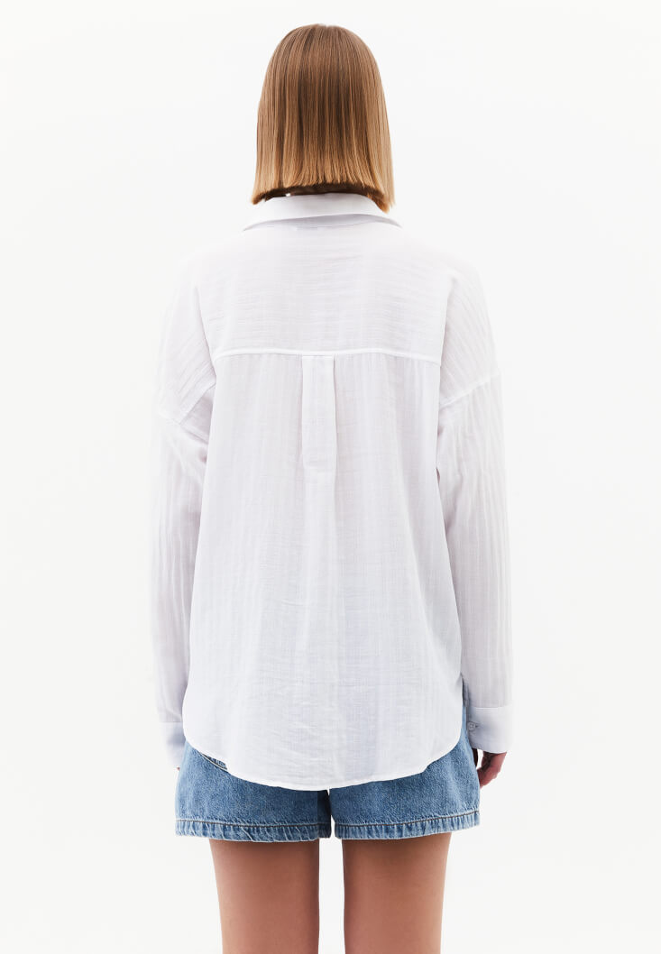• Bayan Beyaz Cep Detaylı Pamuklu Gömlek