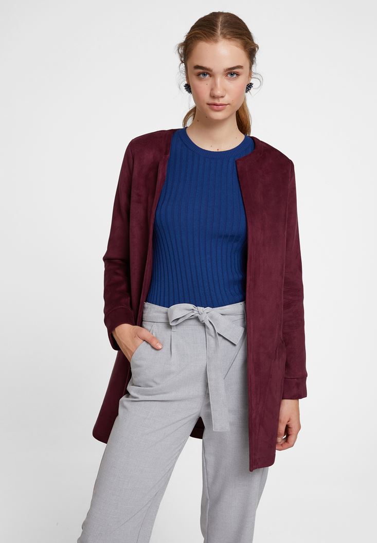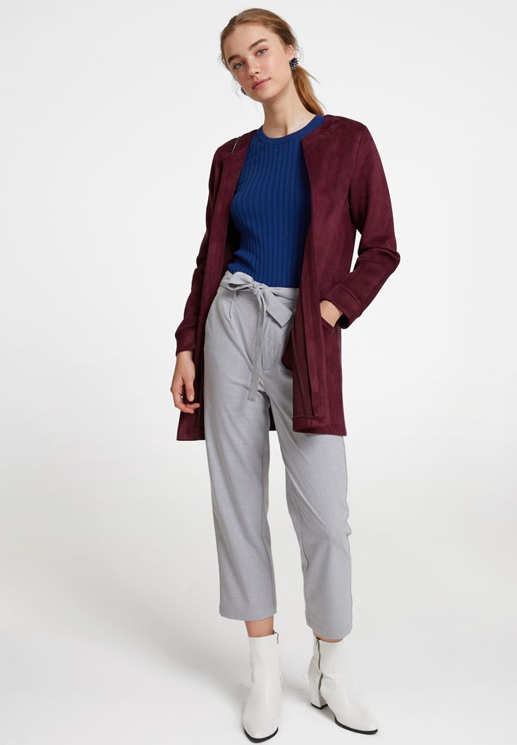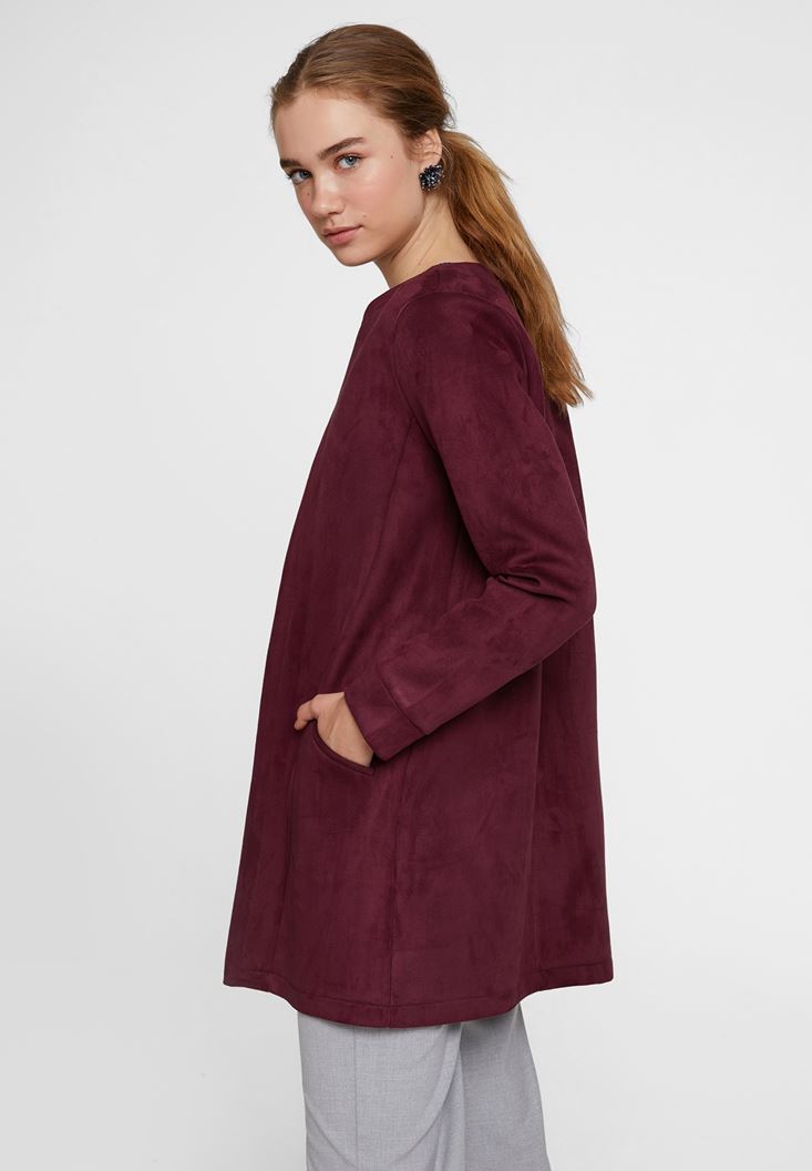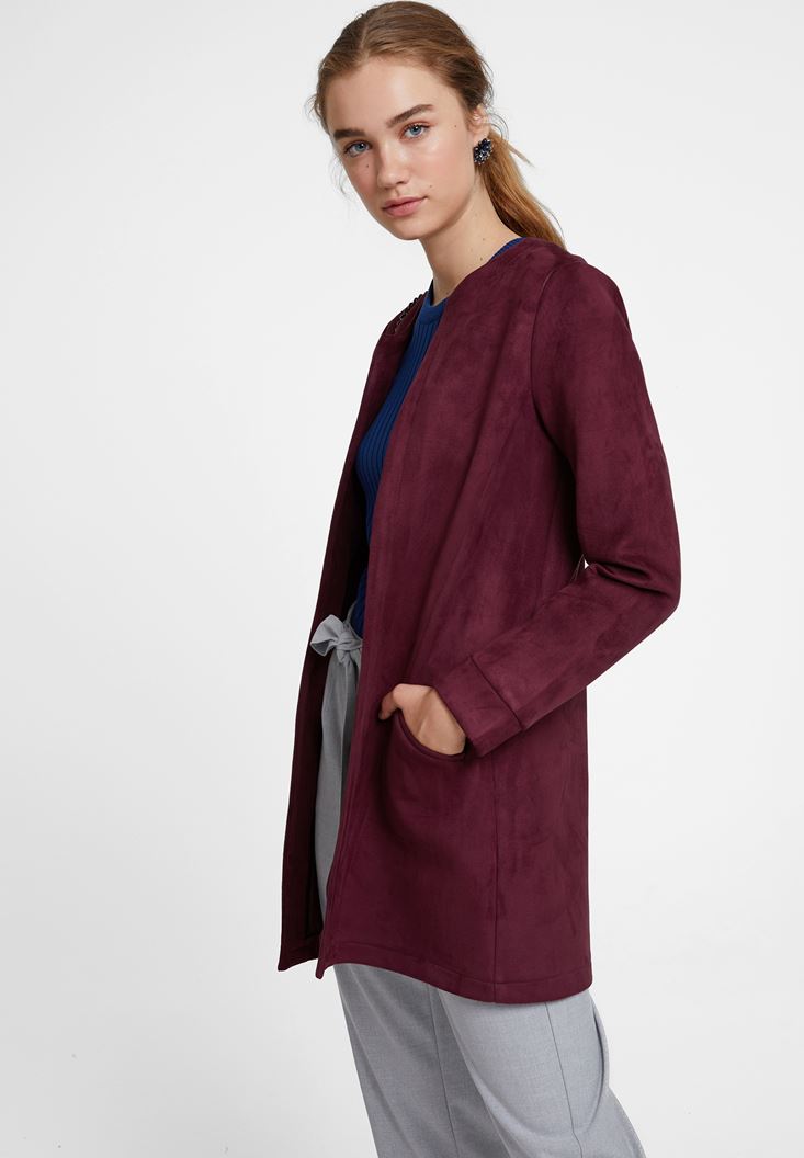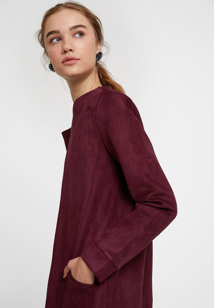 • Bayan Bordo Cep Detaylı Süet Ceket