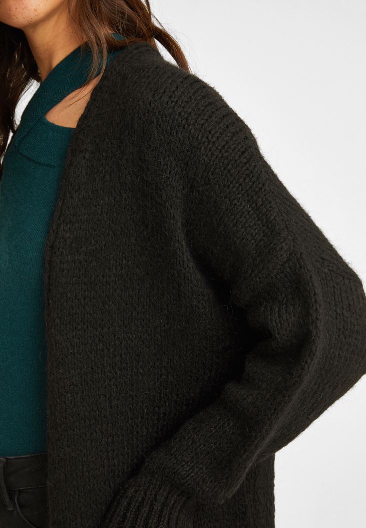 Bol kesim hırka, vücuda oturan bir görünüm için 1 beden küçük tercih edebilirsiniz.
