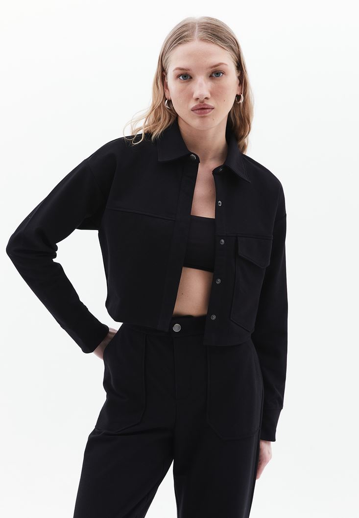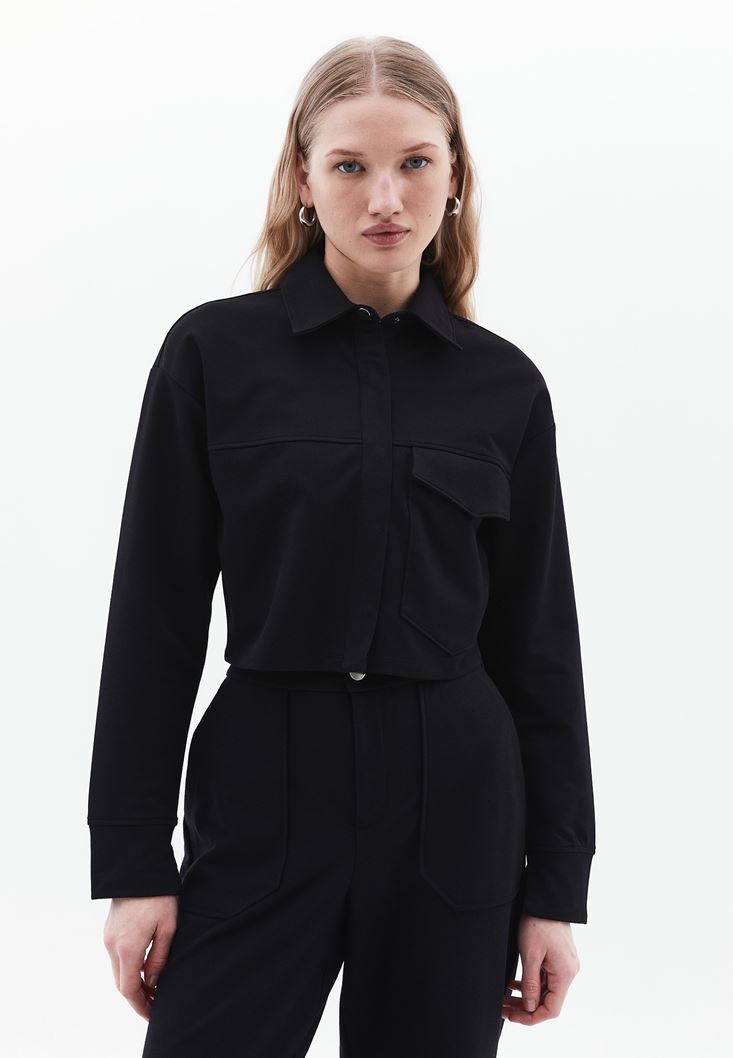 Siyah Cepli Crop Gömlek