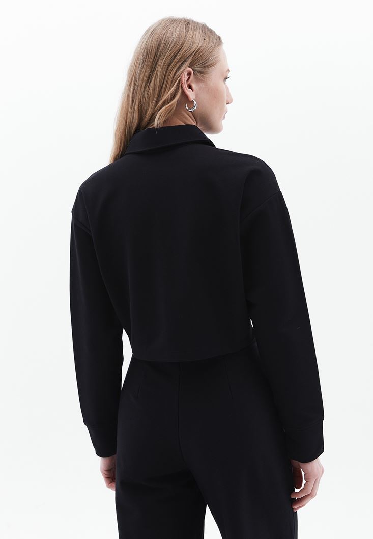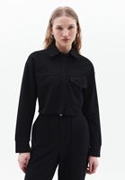 • Bayan Siyah Cepli Crop Gömlek