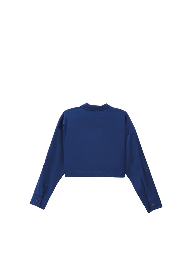 • Bayan Mavi Cepli Crop Gömlek