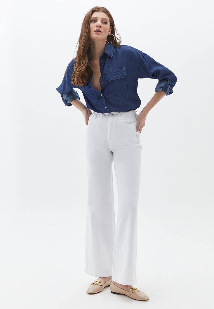 • Bayan Mavi Cepli Denim Gömlek ( TENCEL™ )