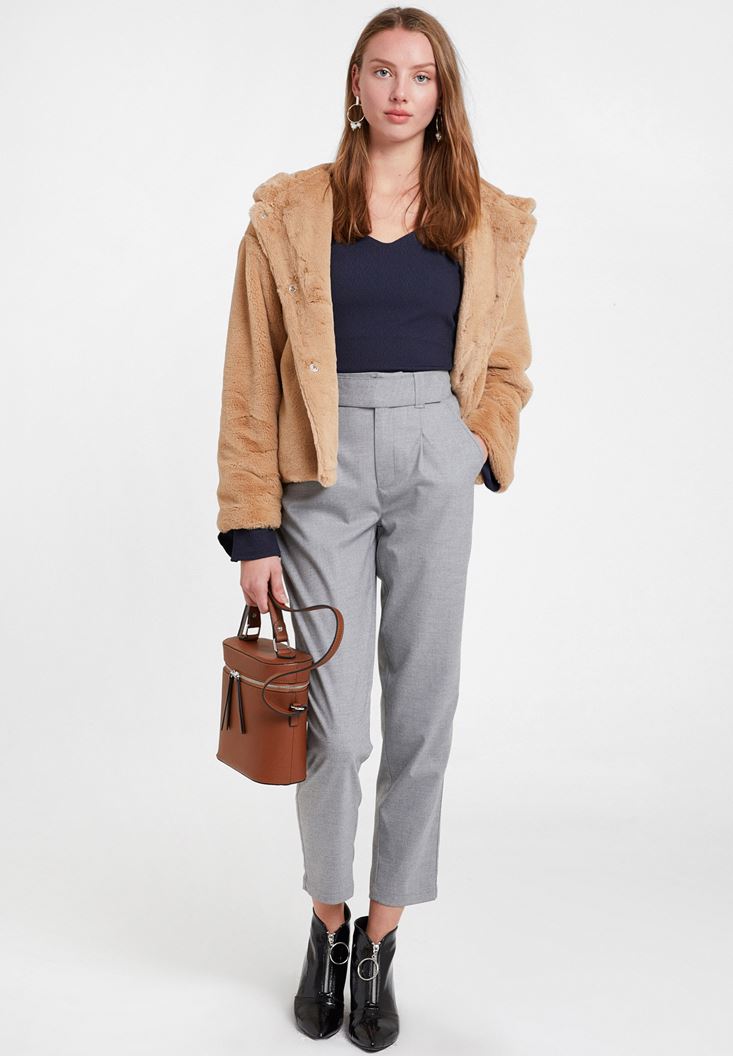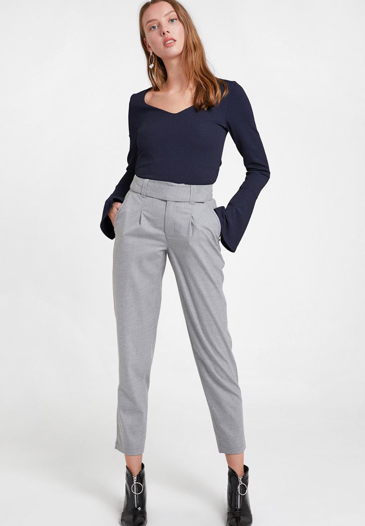 • Bayan Gri Cepli Kemer Detaylı Pantolon