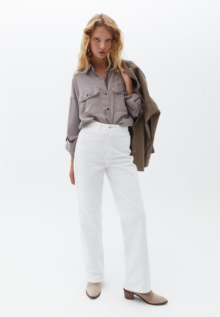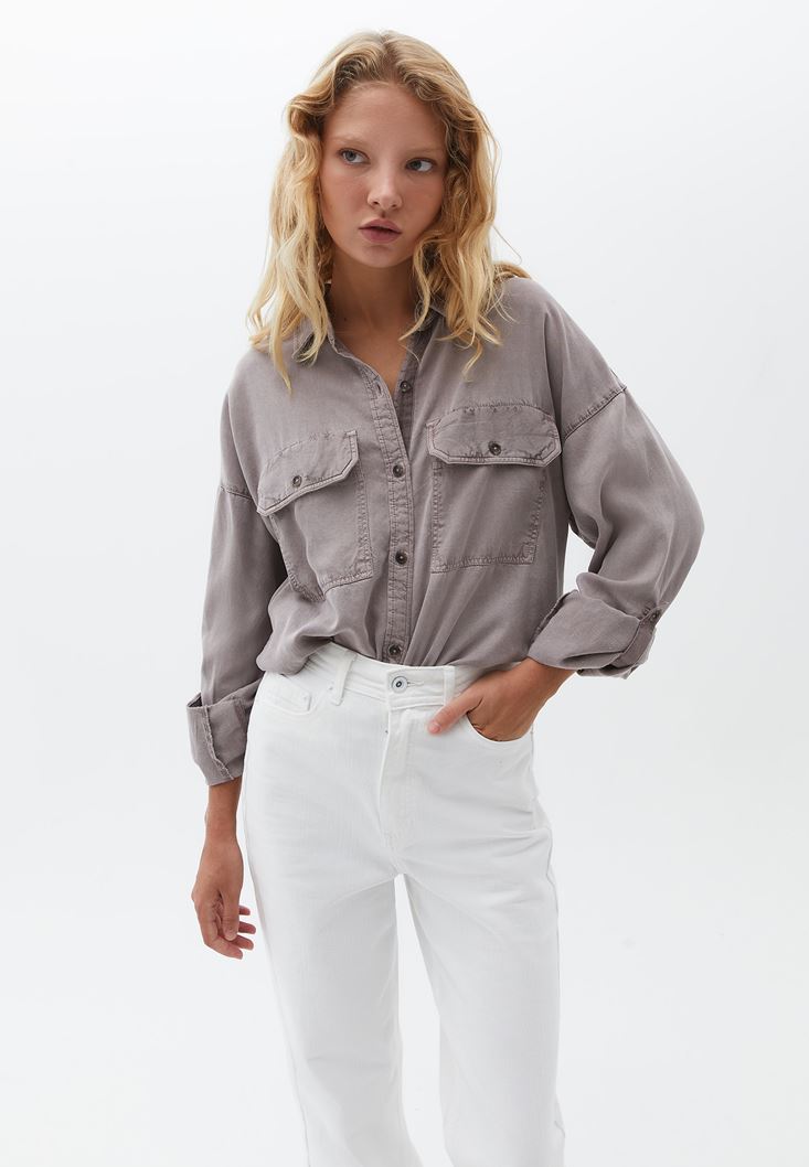 • Bayan Bej Cepli Loose-Fit Gömlek ( TENCEL™ )