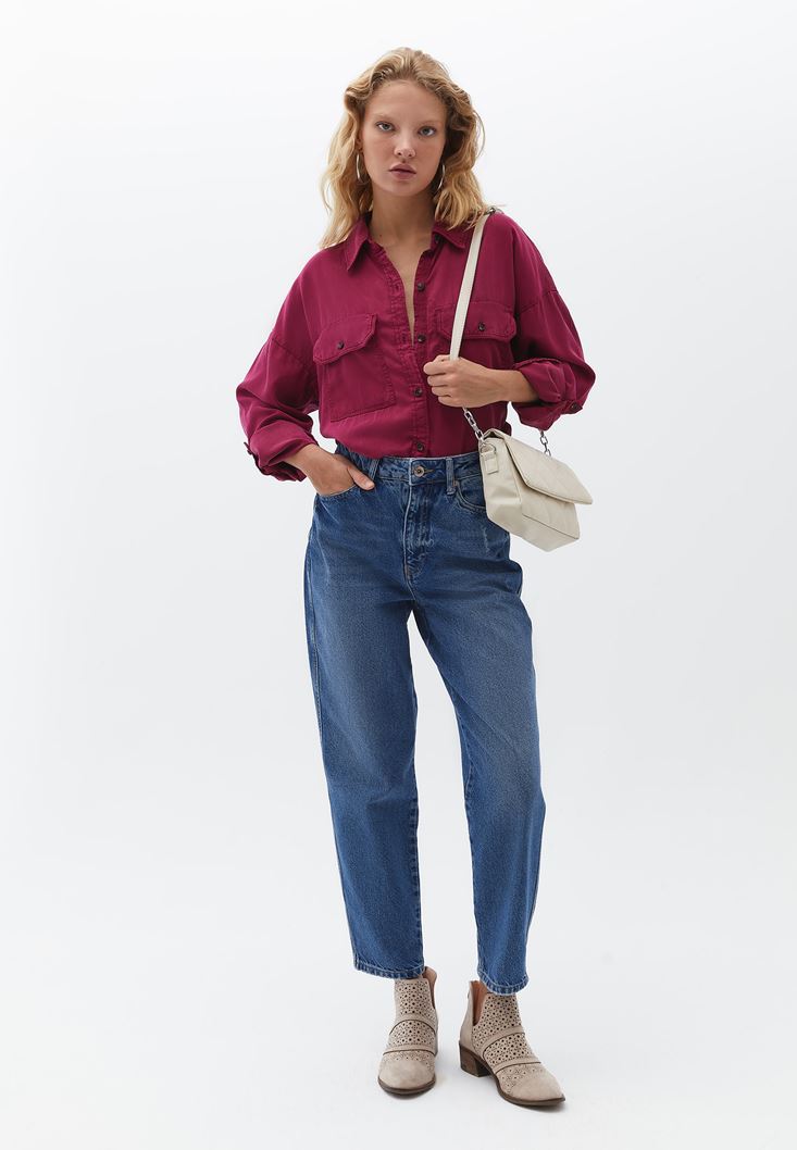• Bayan Bordo Cepli Loose-Fit Gömlek ( TENCEL™ )