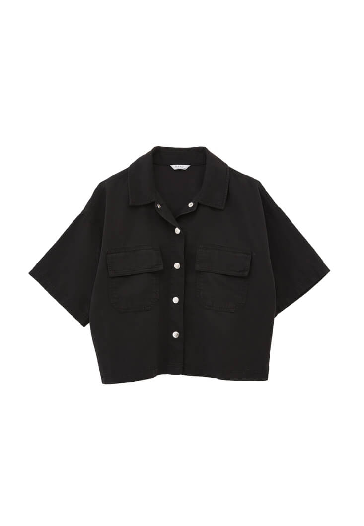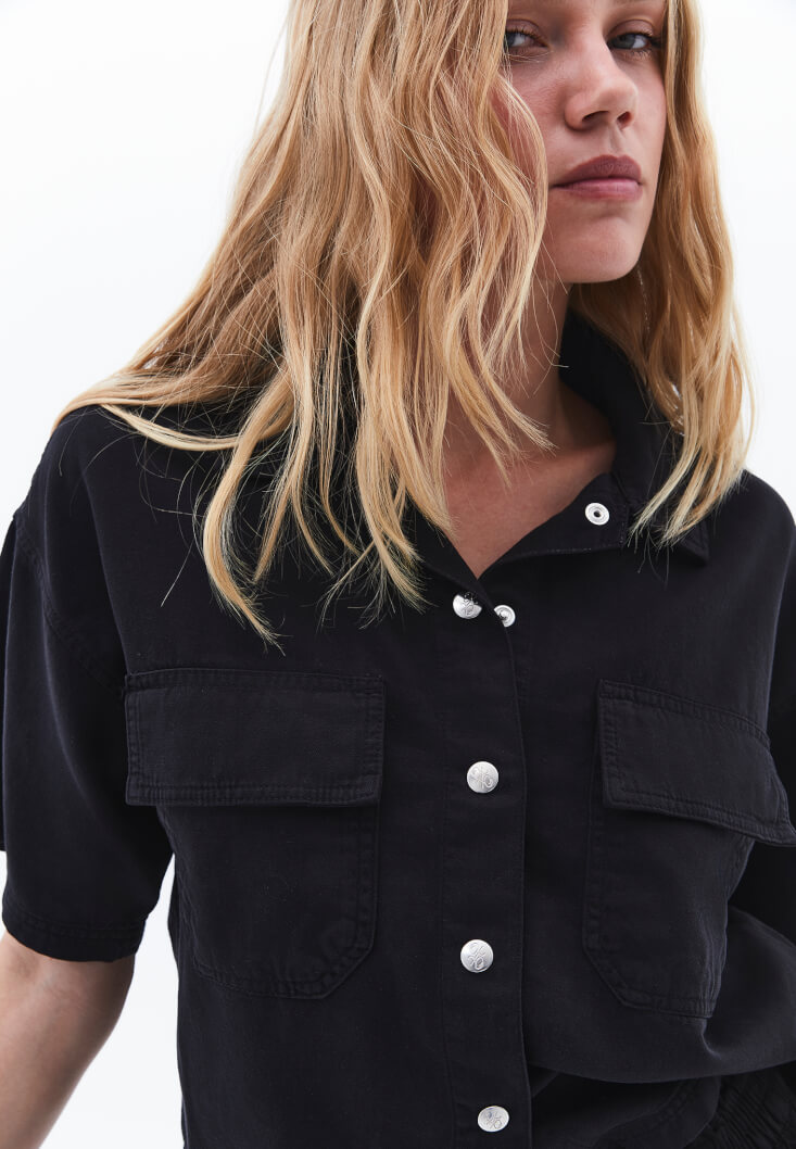 • Bayan Siyah Cepli Oversize Gömlek ( TENCEL™ )