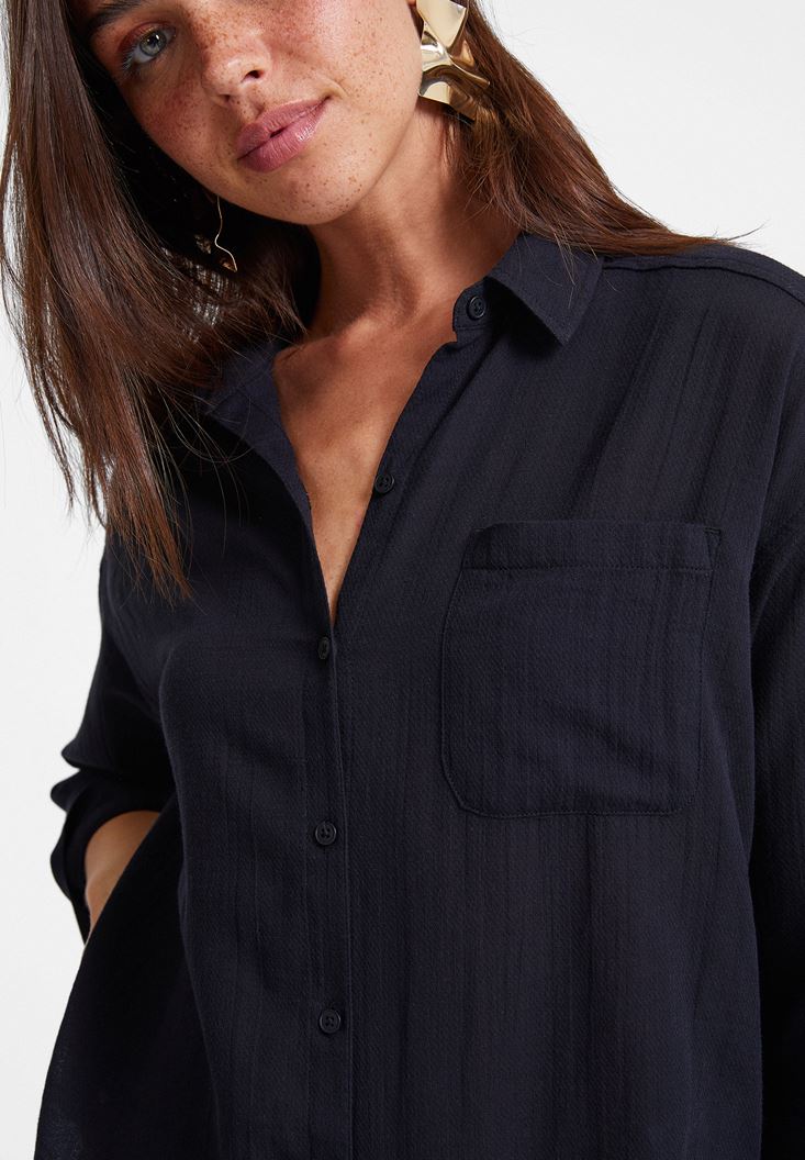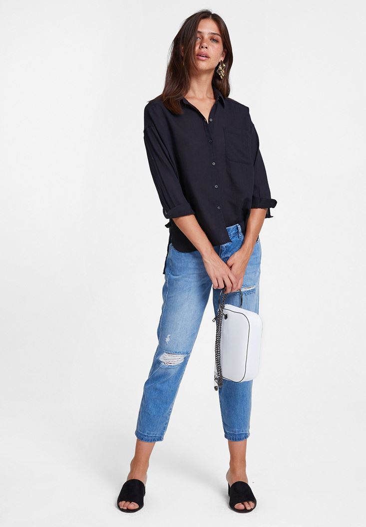 Cepli Pamuk Gömlek modeli dökümlü kesimi, yumusak dokusu ve zarif görüntüsü ile kisa sürede dolabinizdaki kurtarici parçalardan birisi olacak. Hafif transparan dokusu sayesinde kendine has bir enerjisi olan gömlek modelini dilerseniz büstiyer modelleri ile birlikte kombinleyebilirsiniz. Yarim kol kesimi, ön cep detayi ve ince yaka seridi ile zarafeti sadelikle bütünleyen gömlek modelinin sahip oldugu pamuk doku gün boyu kullanimda fark edilir bir hareket özgürlügü ve konfor sunuyor. Günlük kombinlerinizden ofis sikliginiza kadar farkli tarzlarda kullanabileceginiz gömlek modelleri arasinda yer alan tasarim ile özgün bir siklik elde edebilirsiniz. OXXO’nun enerjisini ve zarafetten aldigi ilhami yansitan tasarimlarindan birisi olan gömlek modeli ile sikliginizi ön plana çikaracaksiniz.
