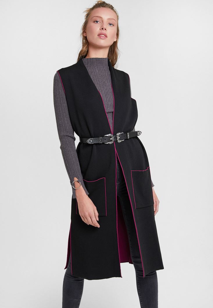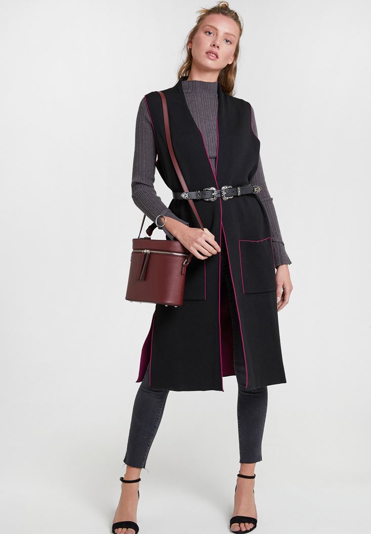 • Bayan Siyah/Mor Cepli Uzun Yelek