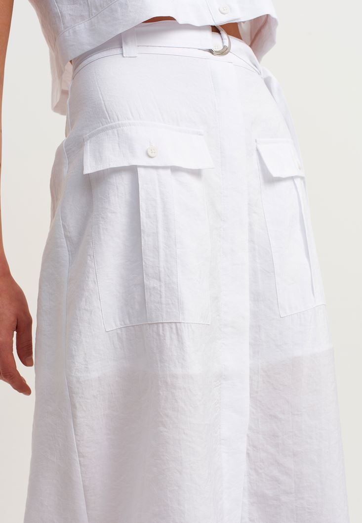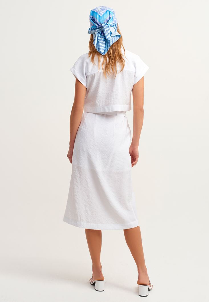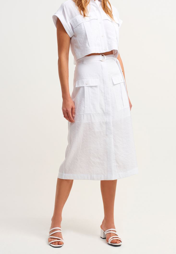 • Bayan Beyaz Cepli ve Kemerli Midi Etek