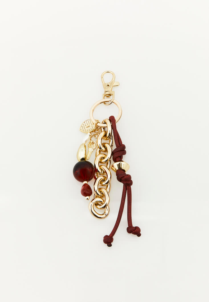 • Bayan Bordo Charm Detaylı Çanta Aksesuarı