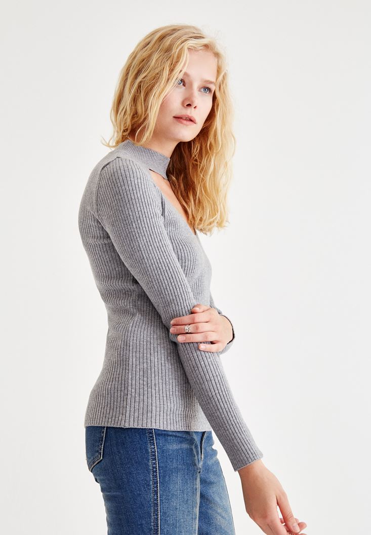 Gri Choker Detaylı Triko