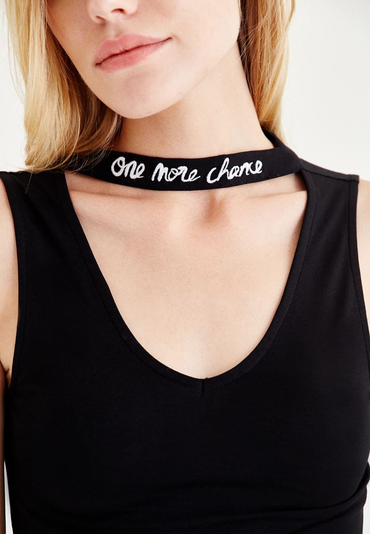 Siyah Choker Detaylı Yarım Bluz