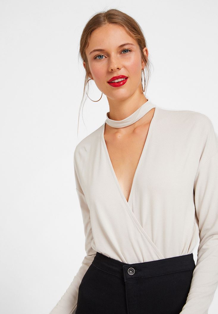 • Bayan Gri Choker Yakalı Kruvaze Bluz