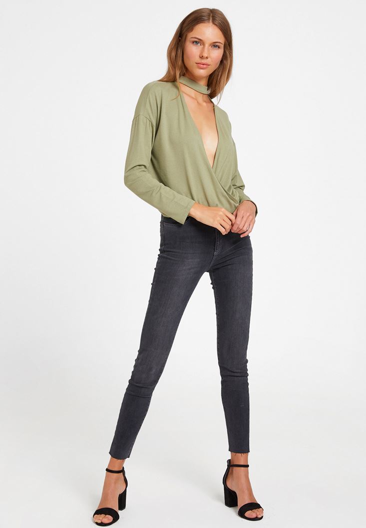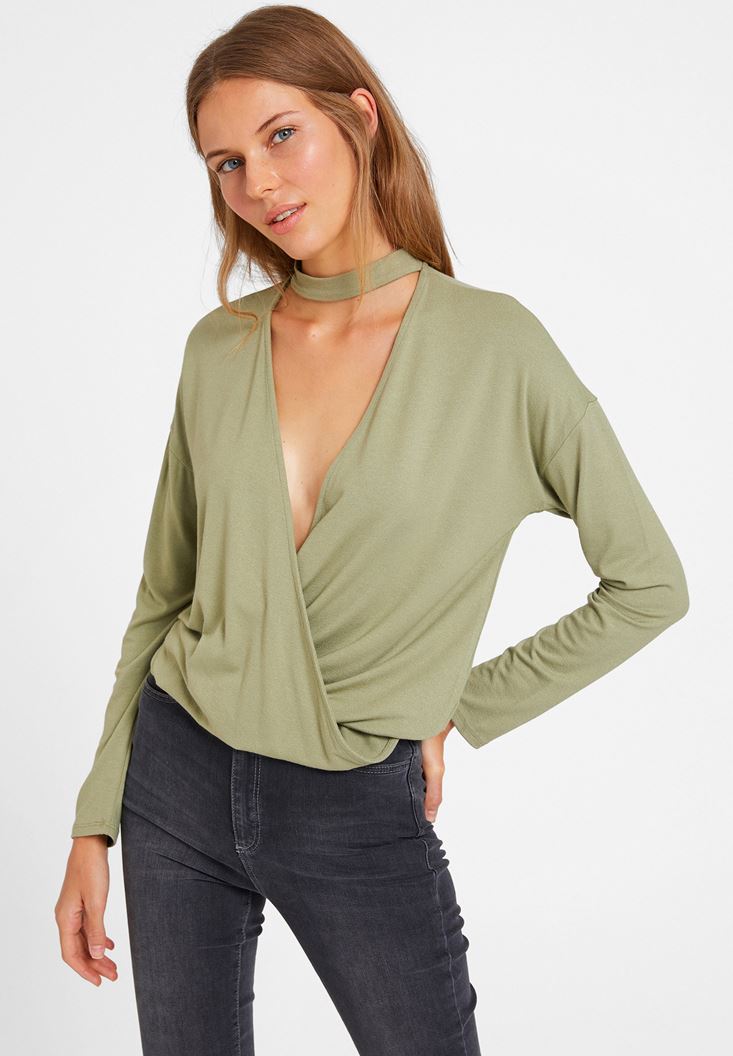 • Bayan Yeşil Choker Yakalı Kruvaze Bluz