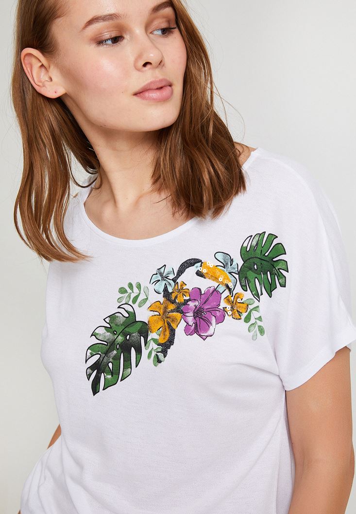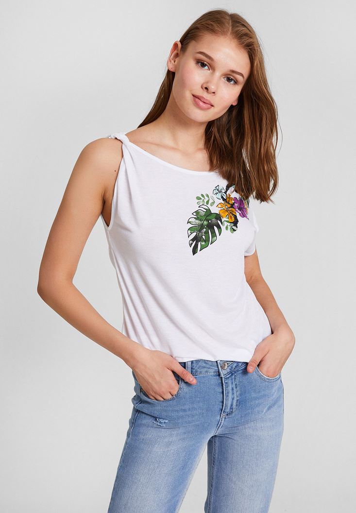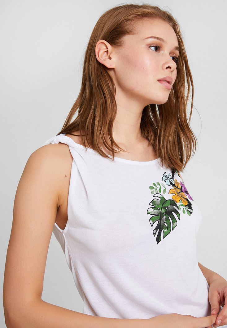 • Bayan Beyaz Çiçek Baskı Detaylı Askılı Bluz