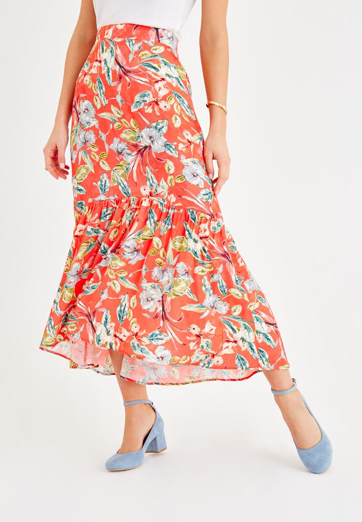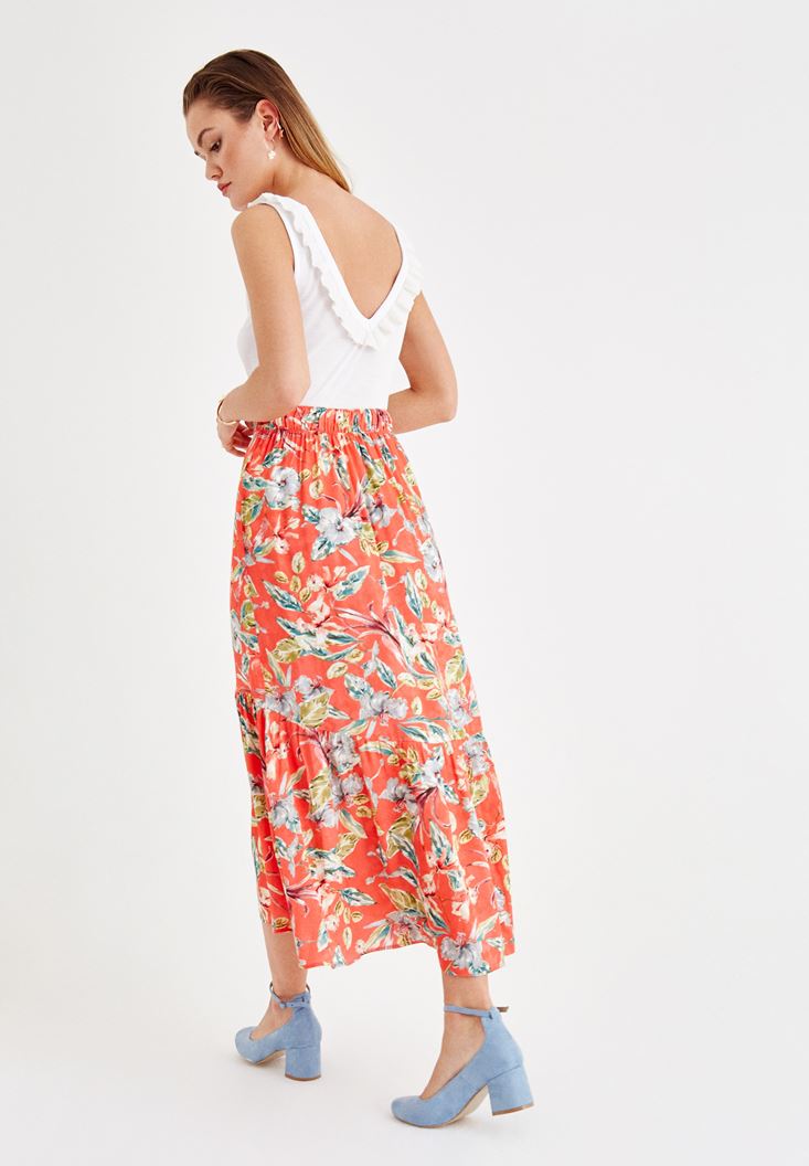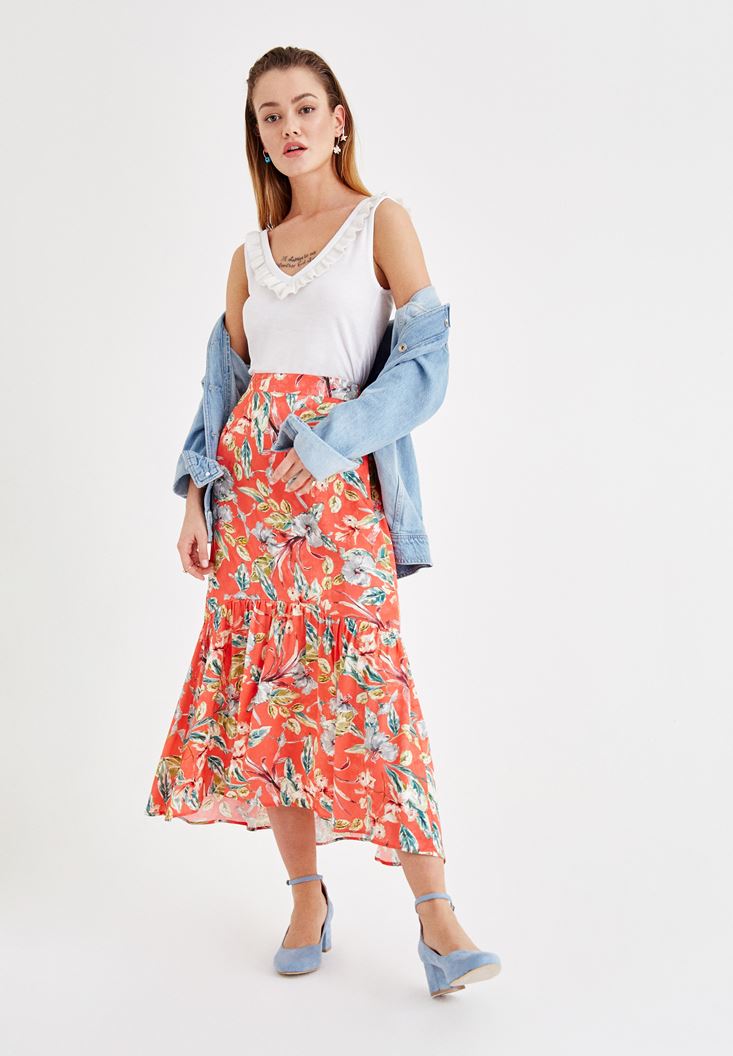 • Bayan Çok Renkli Çiçek Baskılı Etek