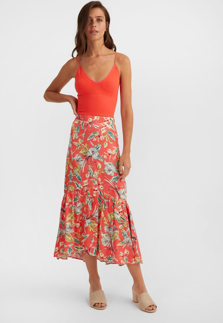 Renkli Çiçek Baskılı Etek modeli, parlaklık sunan yumuşak dokusu ve capcanlı renkleriyle sizlere enerjik bir görünüm sunuyor. kadın etek modeli, belden oturan kalıbına ek olarak volanlı bitişi eşliğinde sizleri farklı detaylarla buluşturuyor. Rahatlık veren kalıbı ve şıklık içeren desenli ayrıntılarıyla dolabınızın favorilerine eklenmeyi bekleyen çiçek baskılı etek modeli ile tarzınıza iddialı bir hava katabilirsiniz. Crop atlet veya tişört modelleri ile kullanabileceğiniz kadın baskılı etek modeli sayesinde stilinize yenilikçi bir görünüm ekleyebilirsiniz. Çiçek baskılı etek modeli ile sezon trendleri arasında hızla zirveye yükselen topuklu terlik modellerini tercih edebilirsiniz. Oxxo'nun özgün stiller için ilham veren kadın etek modelleri ile kombinlerinizi dilediğiniz gibi şekillendirebilirsiniz.