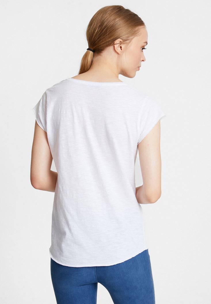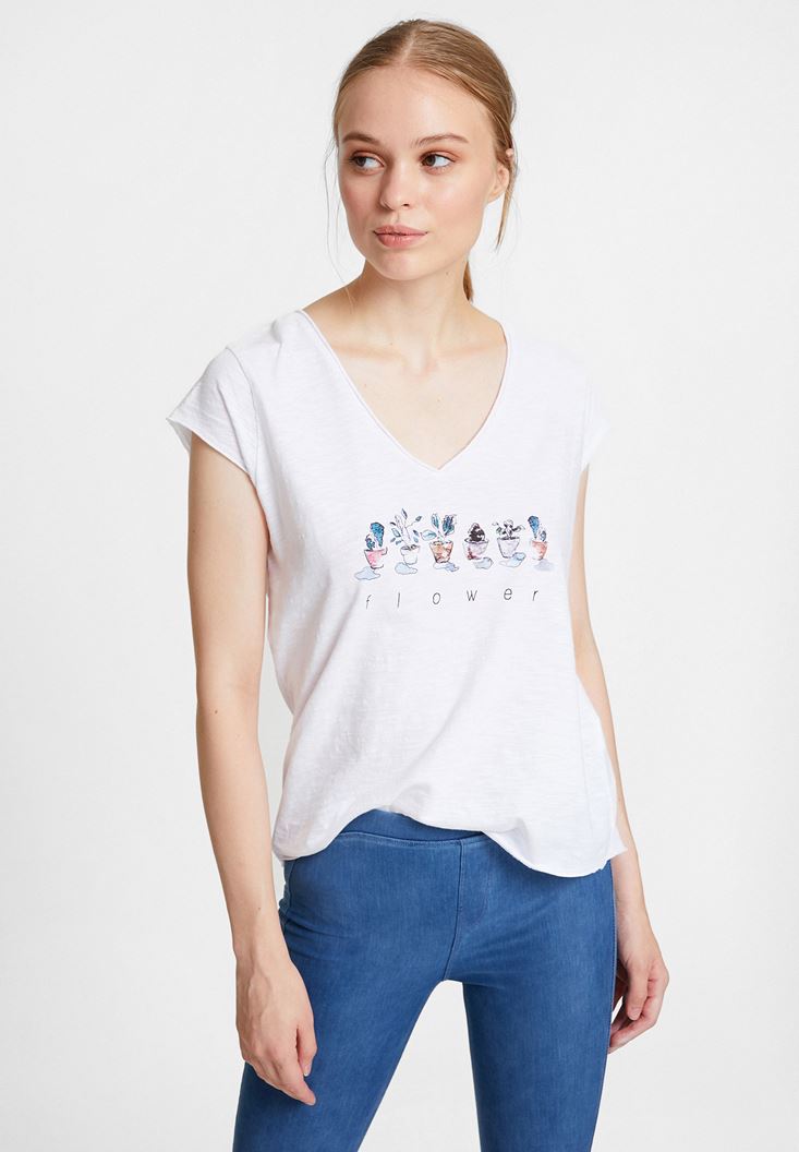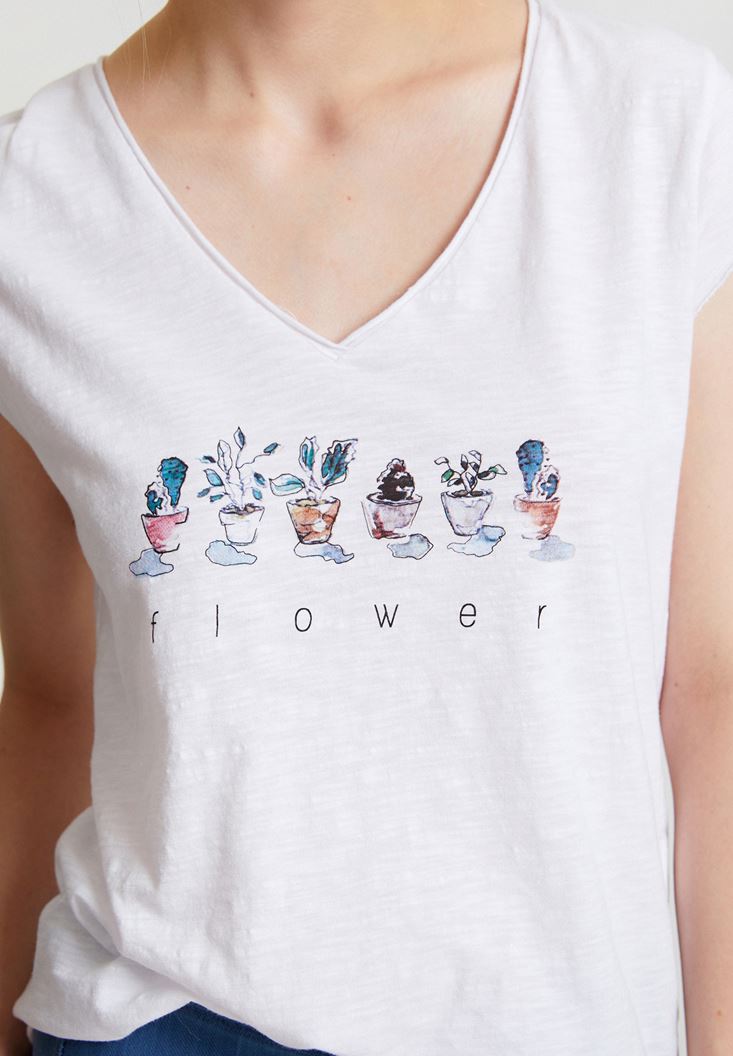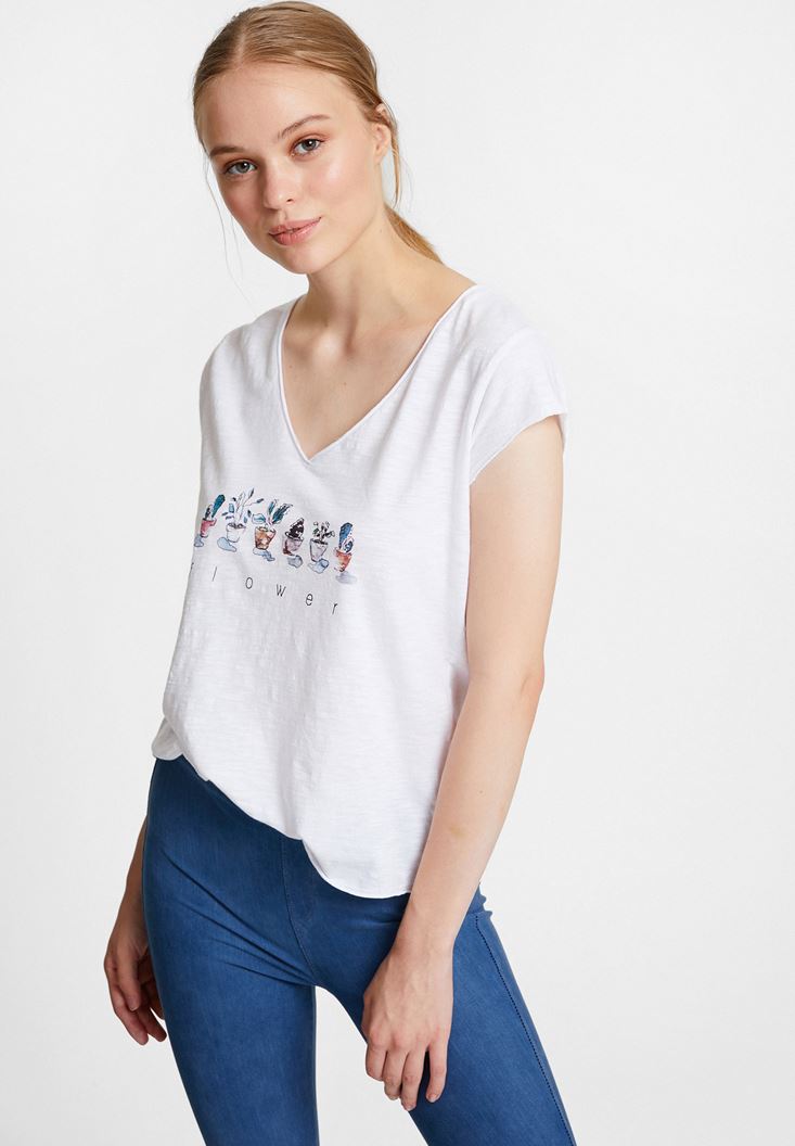 • Bayan Beyaz Çiçek Baskılı V Yaka Tişört