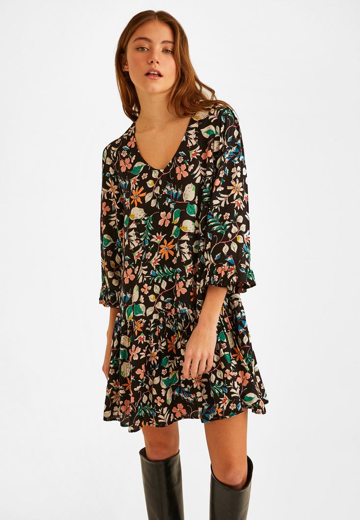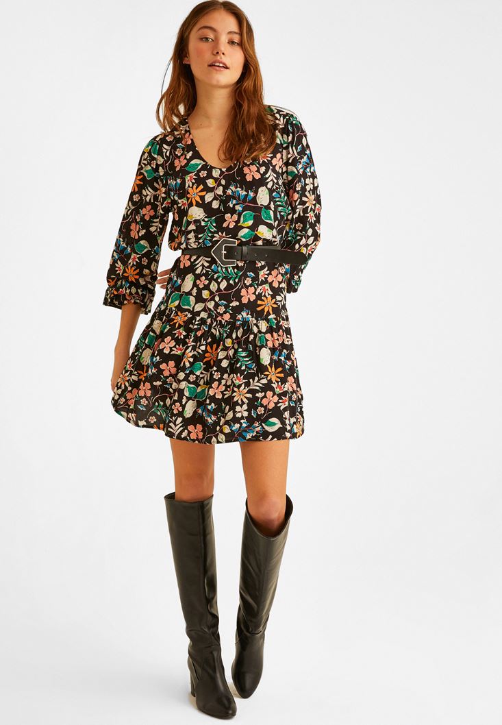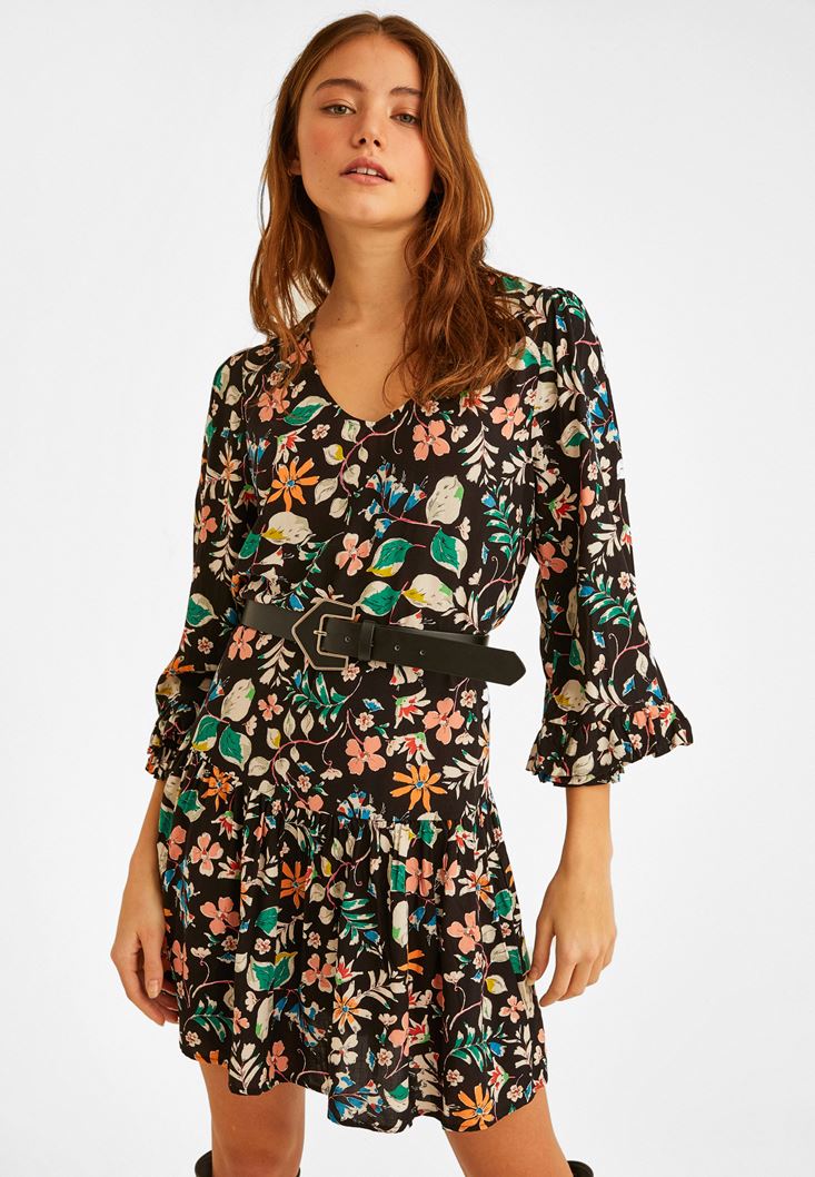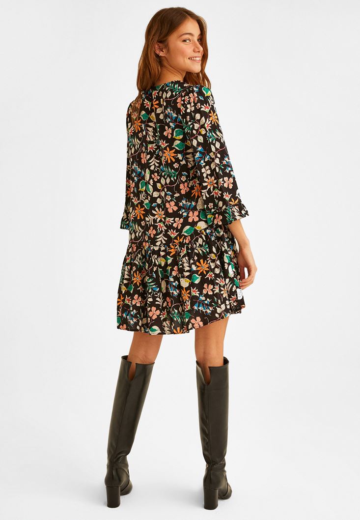 • Bayan Çok Renkli Çiçek Desenli Mini Elbise