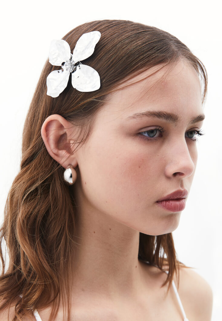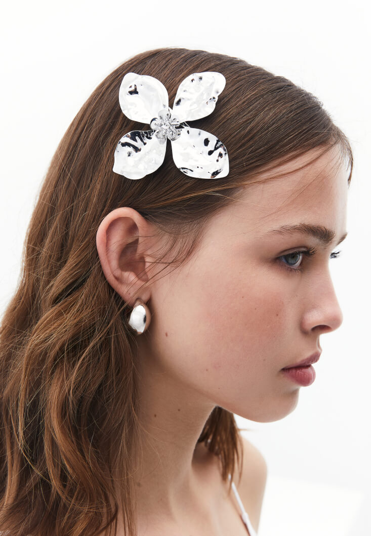 • Bayan Gümüş Çiçek Desenli Saç Tokası