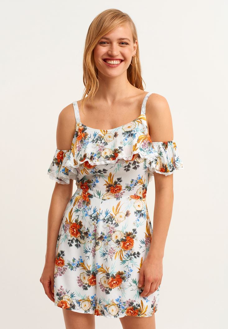 • Bayan Çok Renkli Çiçek Desenli Tulum