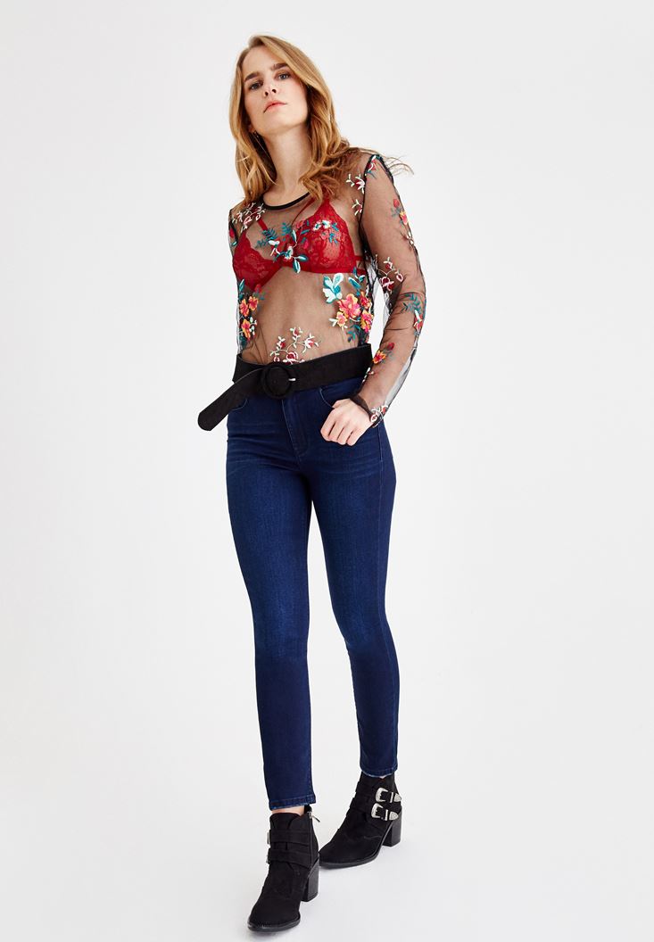Oxxo Çiçek Nakışlı Tül Bluz 207097147