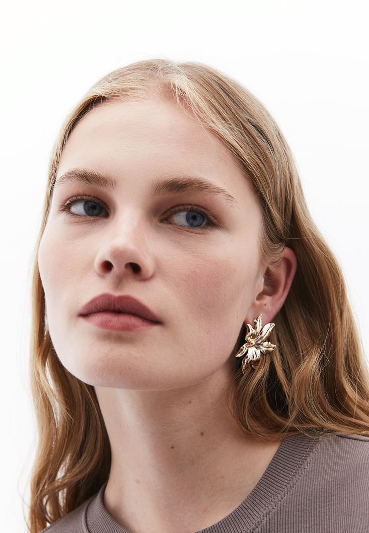 Altın Çiçek Şeklinde Küpe