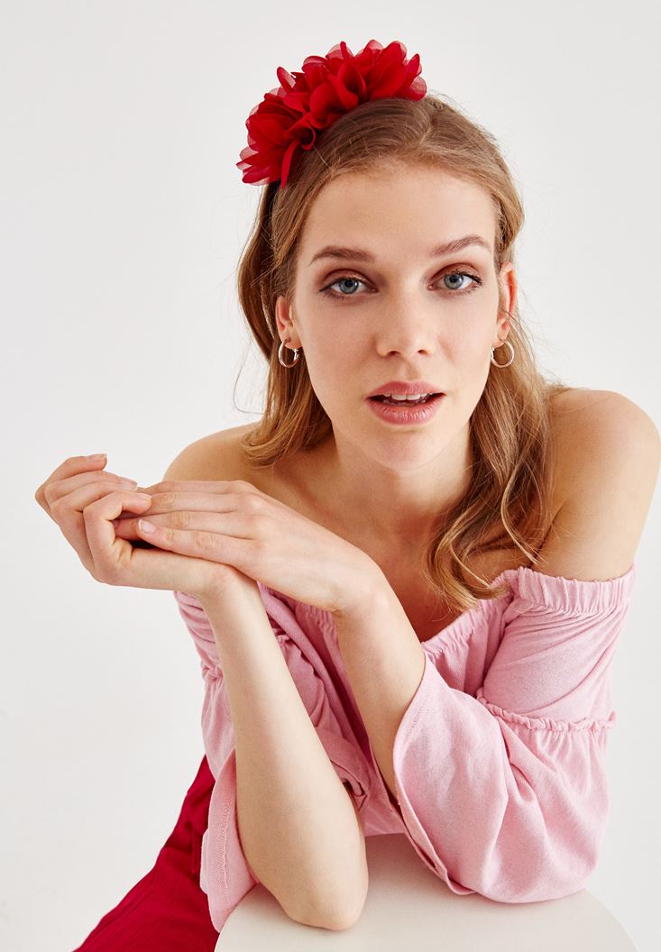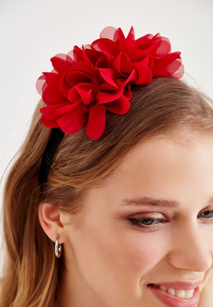 • Bayan Kırmızı Çiçekli Saç Bandı