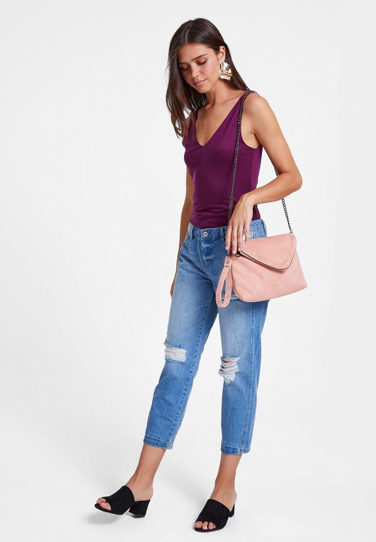 Mor Çift Askılı V Yaka Bluz ( TENCEL™ )