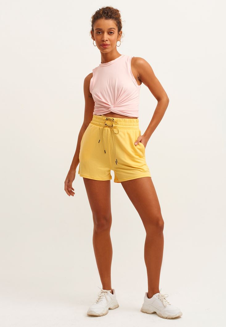 • Bayan Sarı Çift Bağcıklı Sweat Şort ( TENCEL™ )