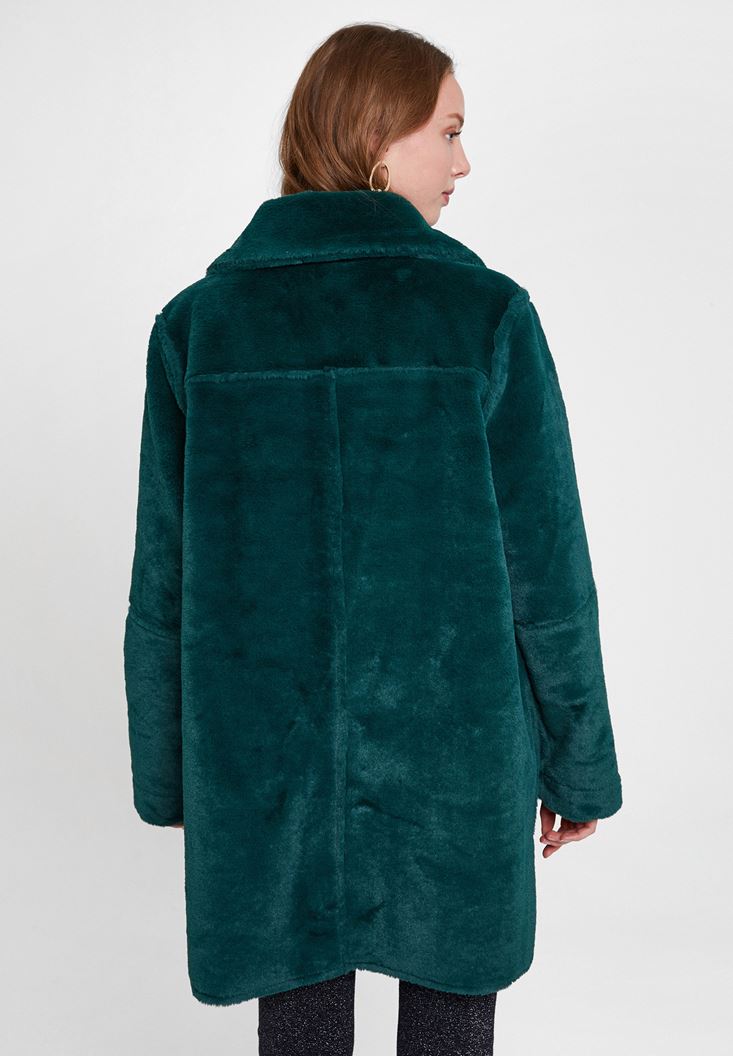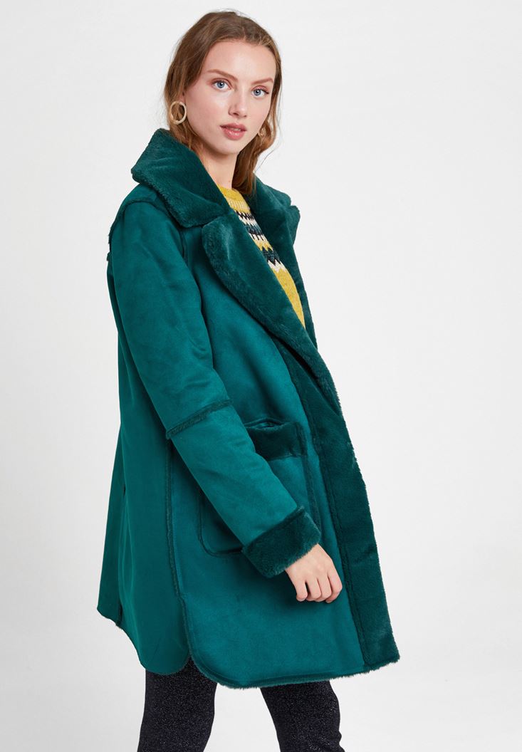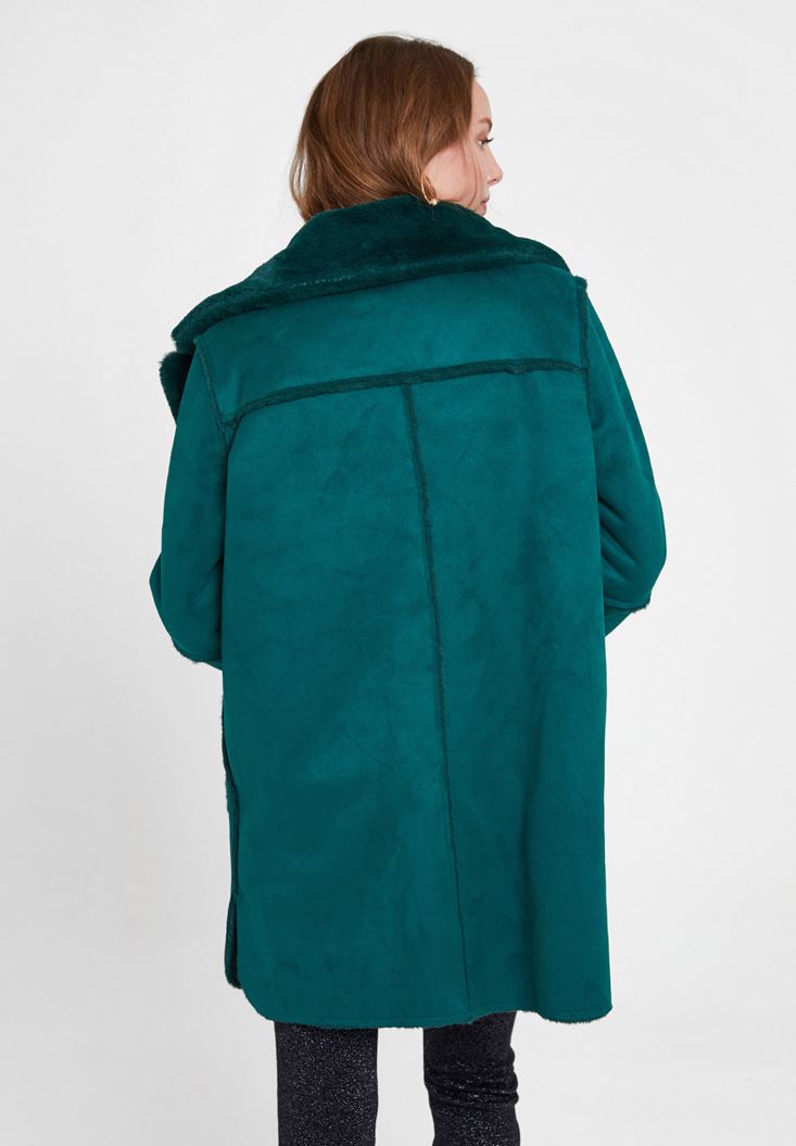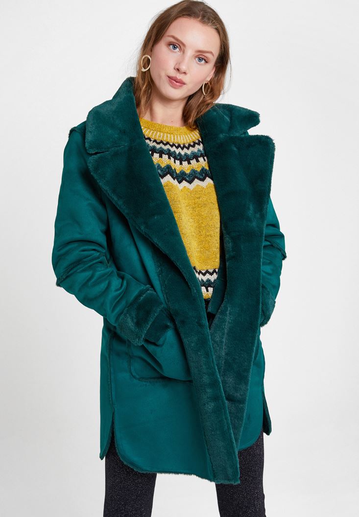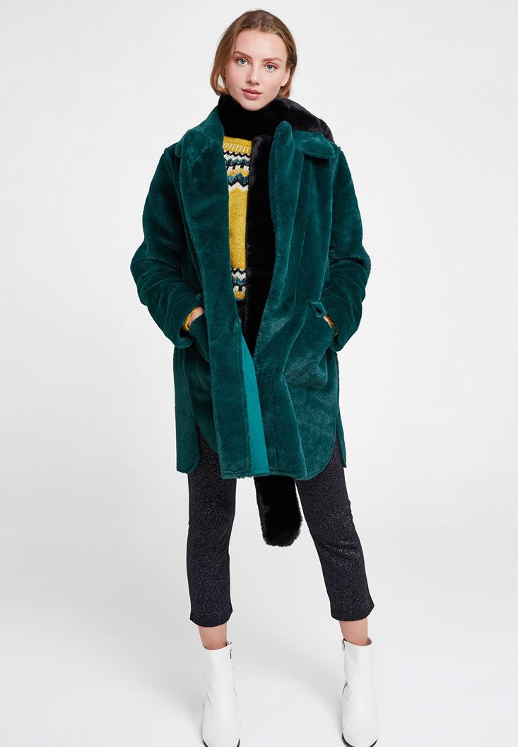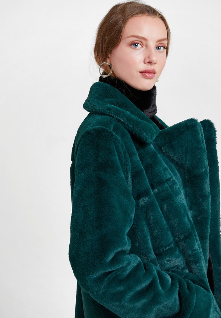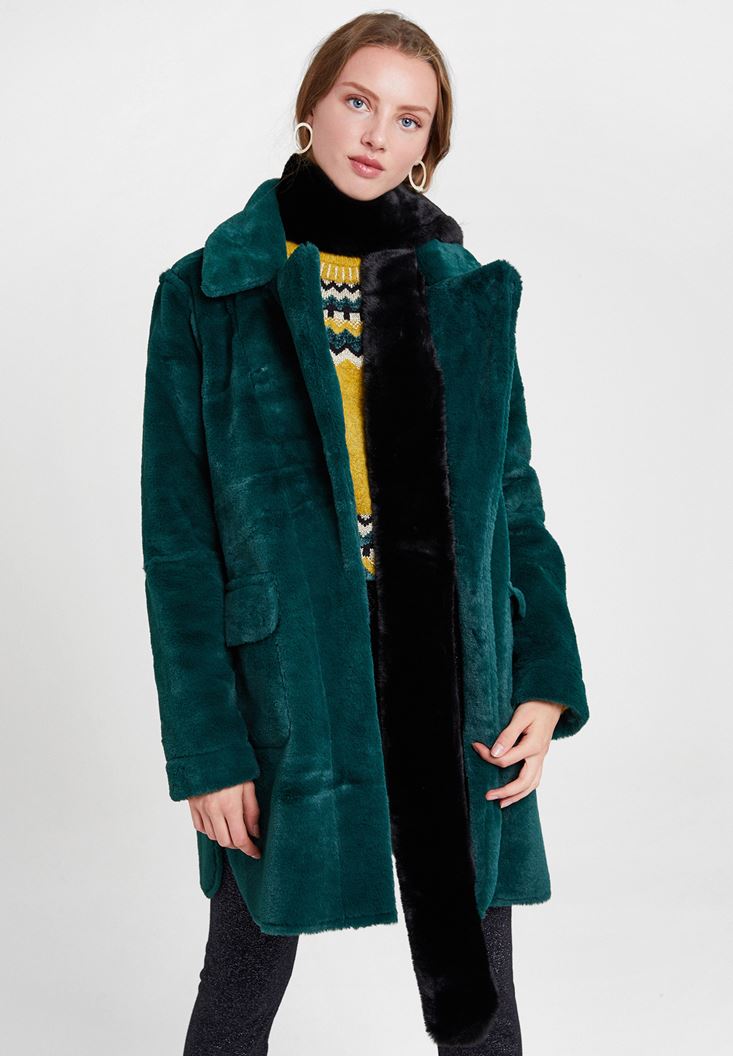 Yeşil Çift Taraflı Suni Kürk Kaban