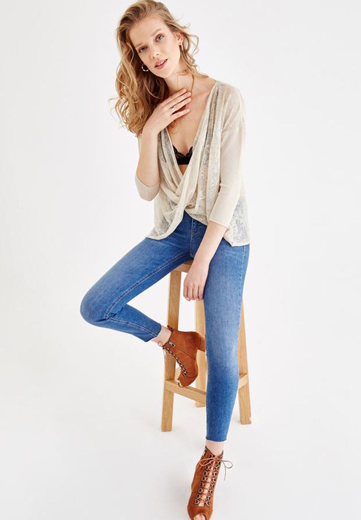 Çift Yönlü Yaka Detayli Triko modeli dikkat çeken tasarimi ile birden fazla kullanim sunarak dolabinizda her zaman size farklilik sunacak parçalardan birisi olacak. Dantel detaylarin ön plana çiktigi dokusu ile zarafeti kombinlerinize basarili bir sekilde getiren triko modelleri arasinda yer alan tasarim sahip oldugu genis yaka kesimi ile farkli kullanimlari mümkün kiliyor. Genis bir yaka kesimine sahip olan triko modelini dilerseniz sirt dilerseniz gögüs dekolteli olarak kullanabilirsiniz. Düsük omuzlu bir sekilde de kullanabileceginiz tasarim bu sayede birbirinden farkli kombinler yapmanizi saglayan kurtarici parçalardan birisi olacak. OXXO'nun detaylardan gelen sikligi kullanisli bir tasarim ile bir araya getirdigi parçalardan birisi olan triko modelini her zaman keyifle kullanacaksiniz.