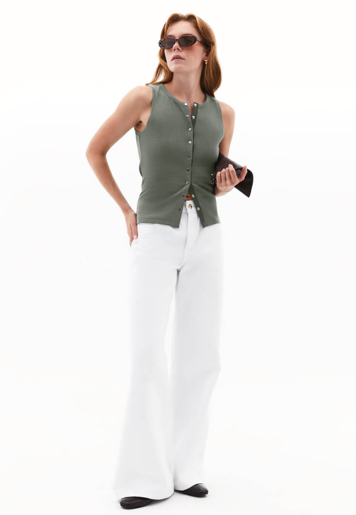 Sıfır yaka formu ve önde yer alan çıtçıt kapamasıyla öne çıkan bu atlet, minimal görünümünü modern bir dokunuşla buluşturuyor. Esnek yapısı sayesinde vücudu saran fit bir siluet sunarken, sade tarzınızı dinamik bir detayla zenginleştirmenize yardımcı olur.